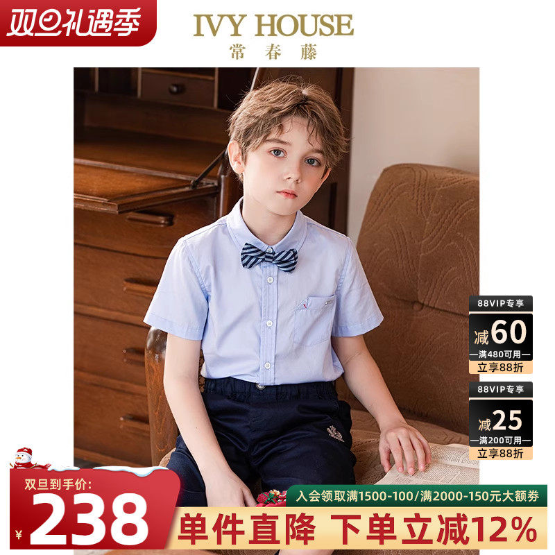 IVY HOUSE常春藤儿童装男童衬衫夏季款 平织简约短袖衬衣全棉学院