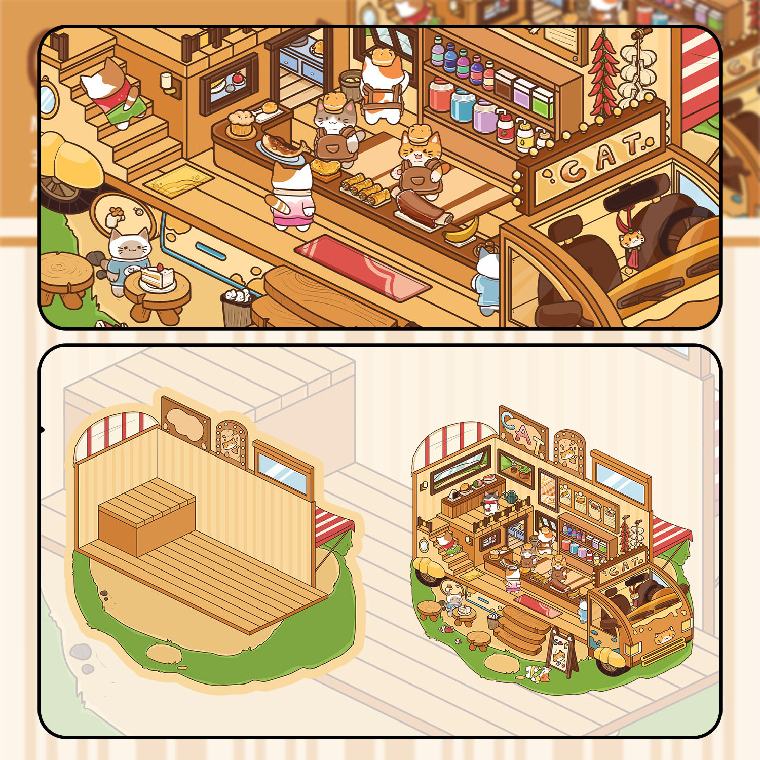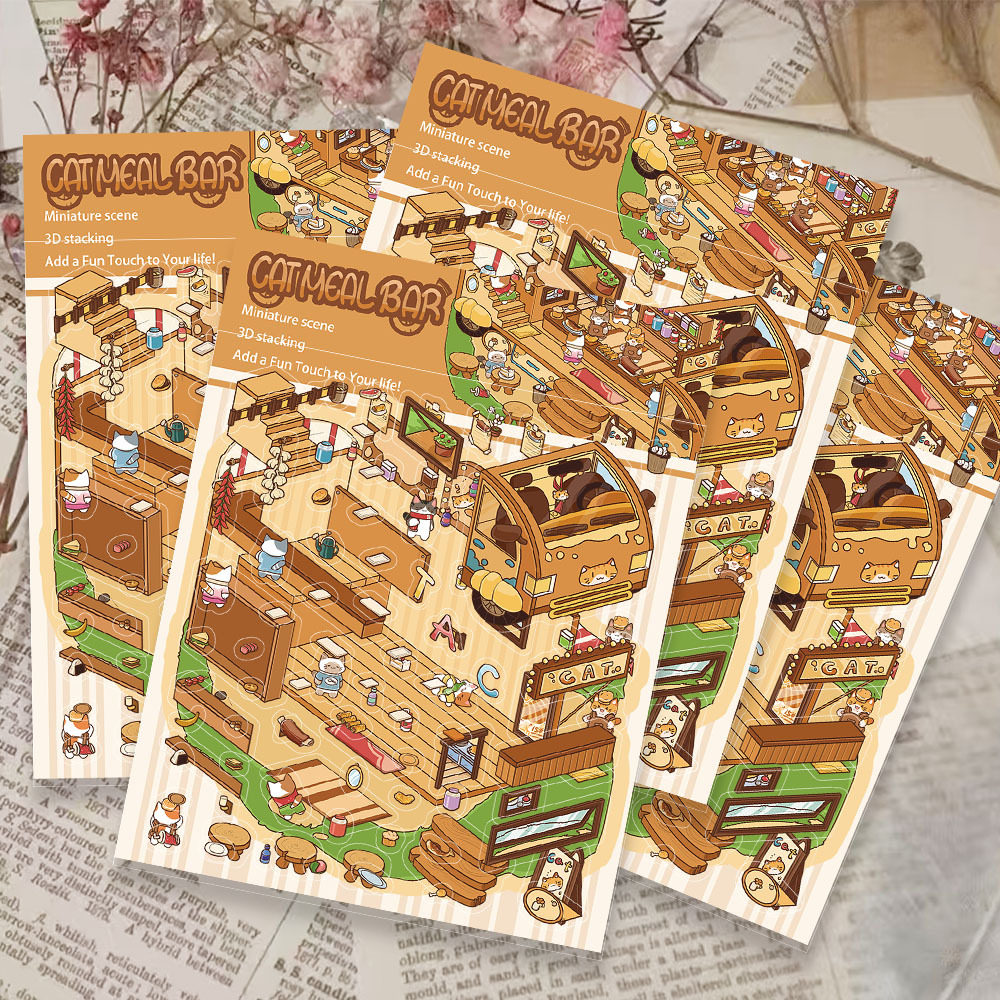 猫咪餐吧造景pet贴纸卡通可爱微缩场景堆叠创意手工拼贴贴画大张