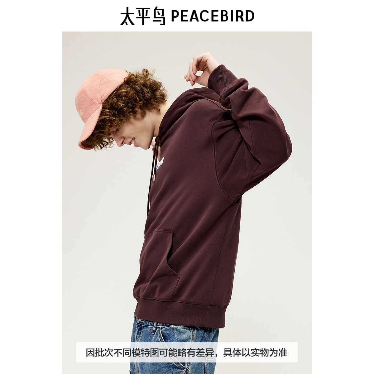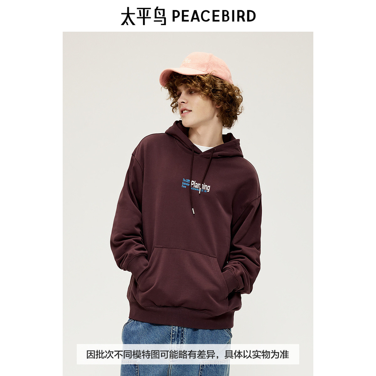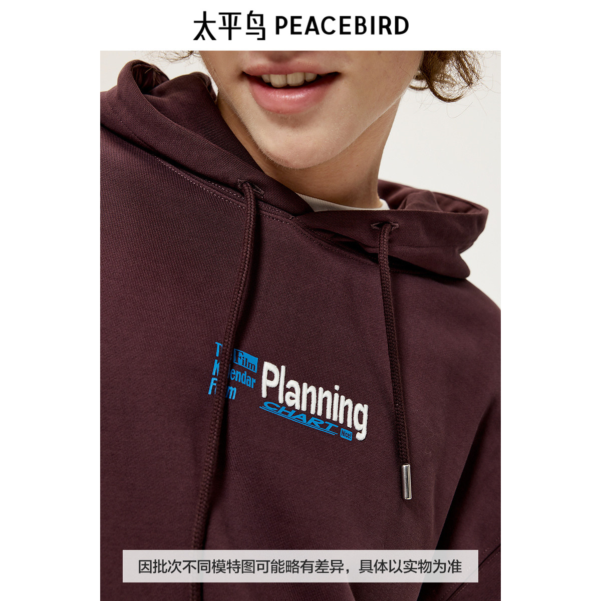 太平鸟男装 美式复古连帽外套秋季潮流撞色字母刺绣卫衣
