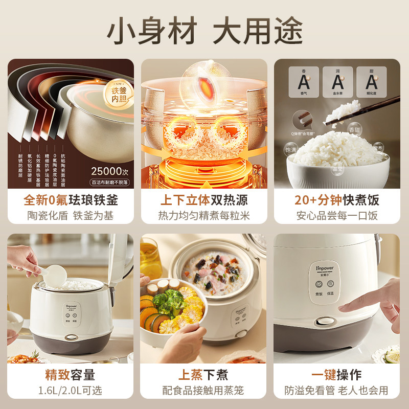 正品小电饭锅小2人小型迷你电饭煲1人家用多功能学生宿舍可蒸煮锅