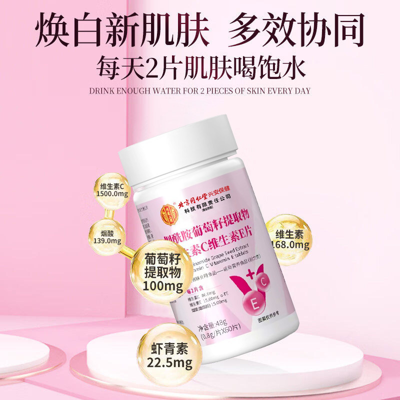 烟酰胺维生素c维生素e美白淡斑去黄葡萄籽片男女士专用官方旗舰店
