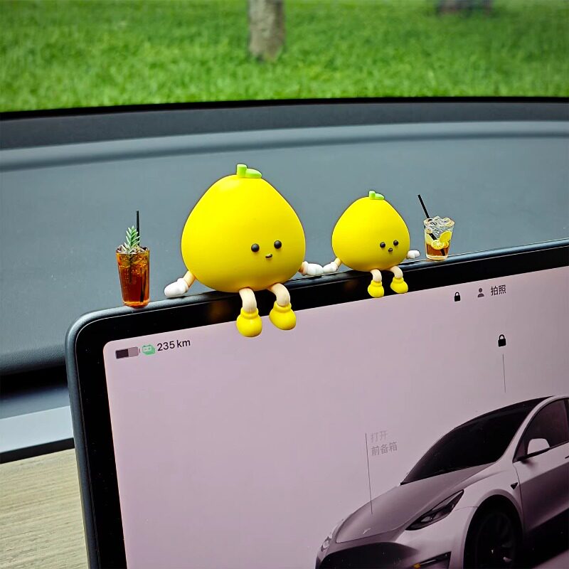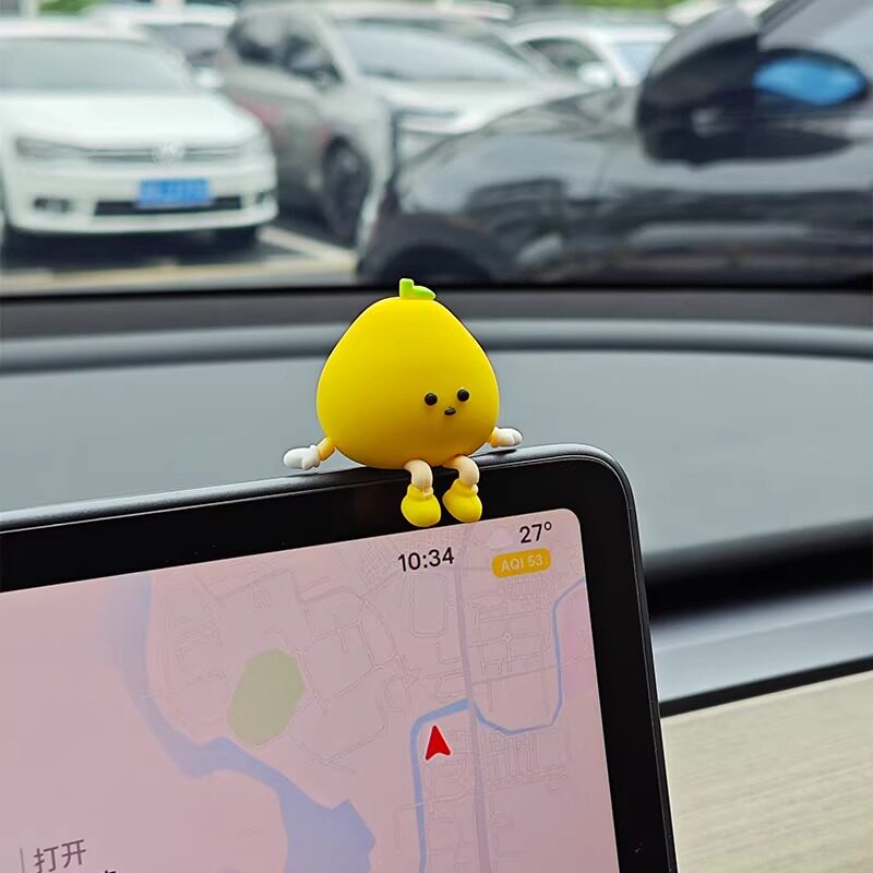 2026新款车载汽车中控台可爱桃子小人摆件创意车内治愈有趣装饰品