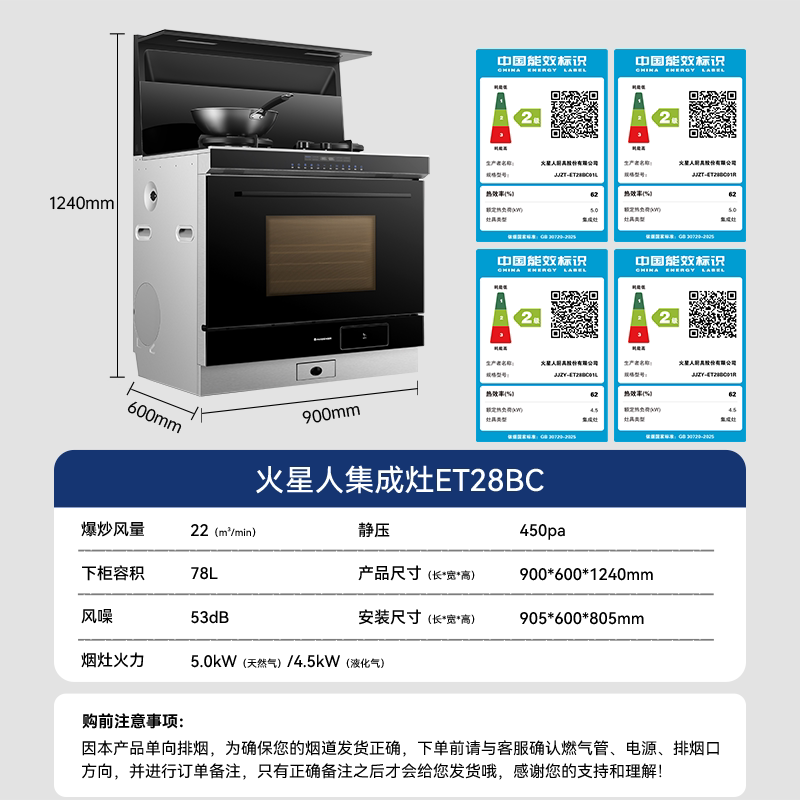 火星人ET28BC氧气系列集成灶家用厨房蒸烤箱灶台一体灶具下排烟