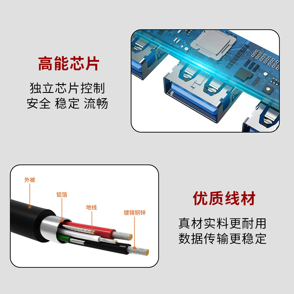 USB3.0集线器七合一拓展imac台式机MacBook笔记本电脑通用扩展坞HUB分线器连接鼠标键盘U盘mac多接口转换延长
