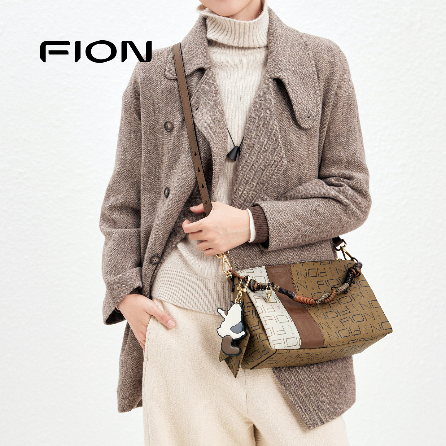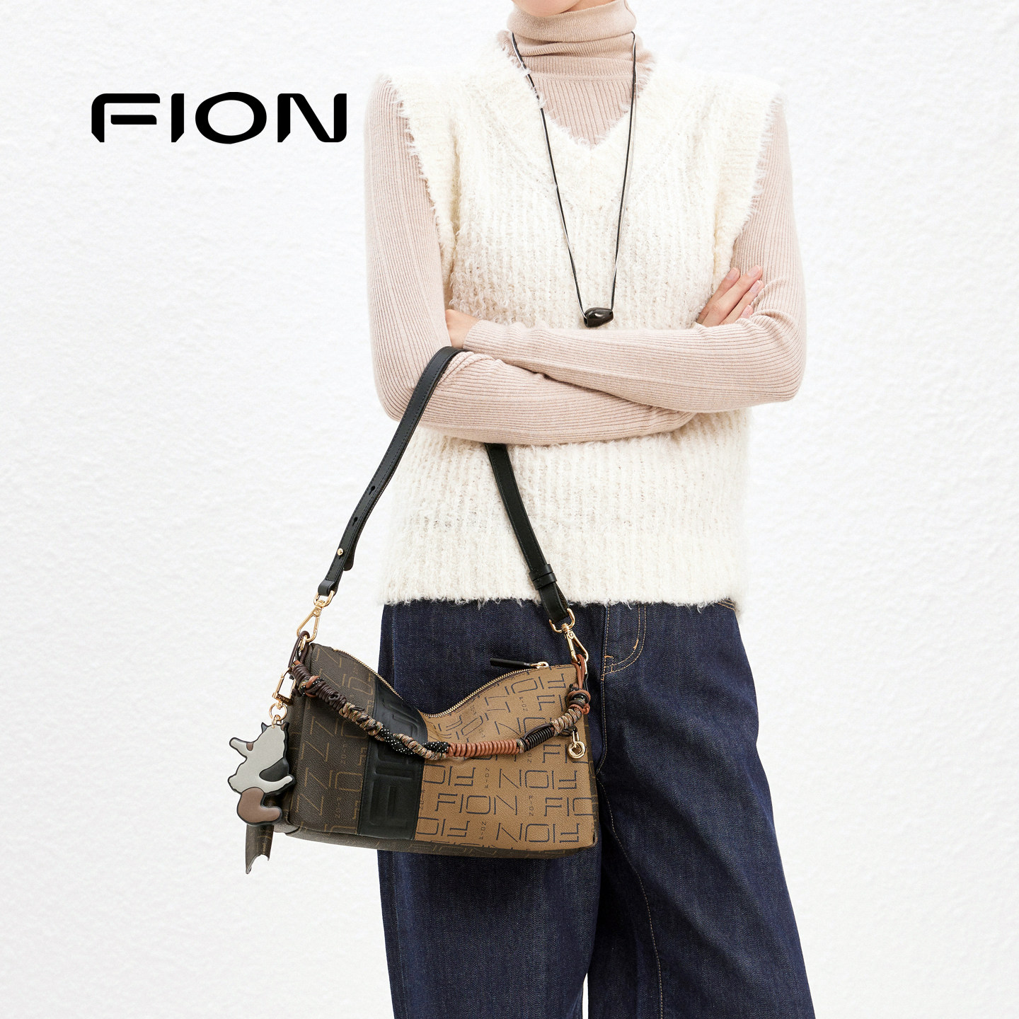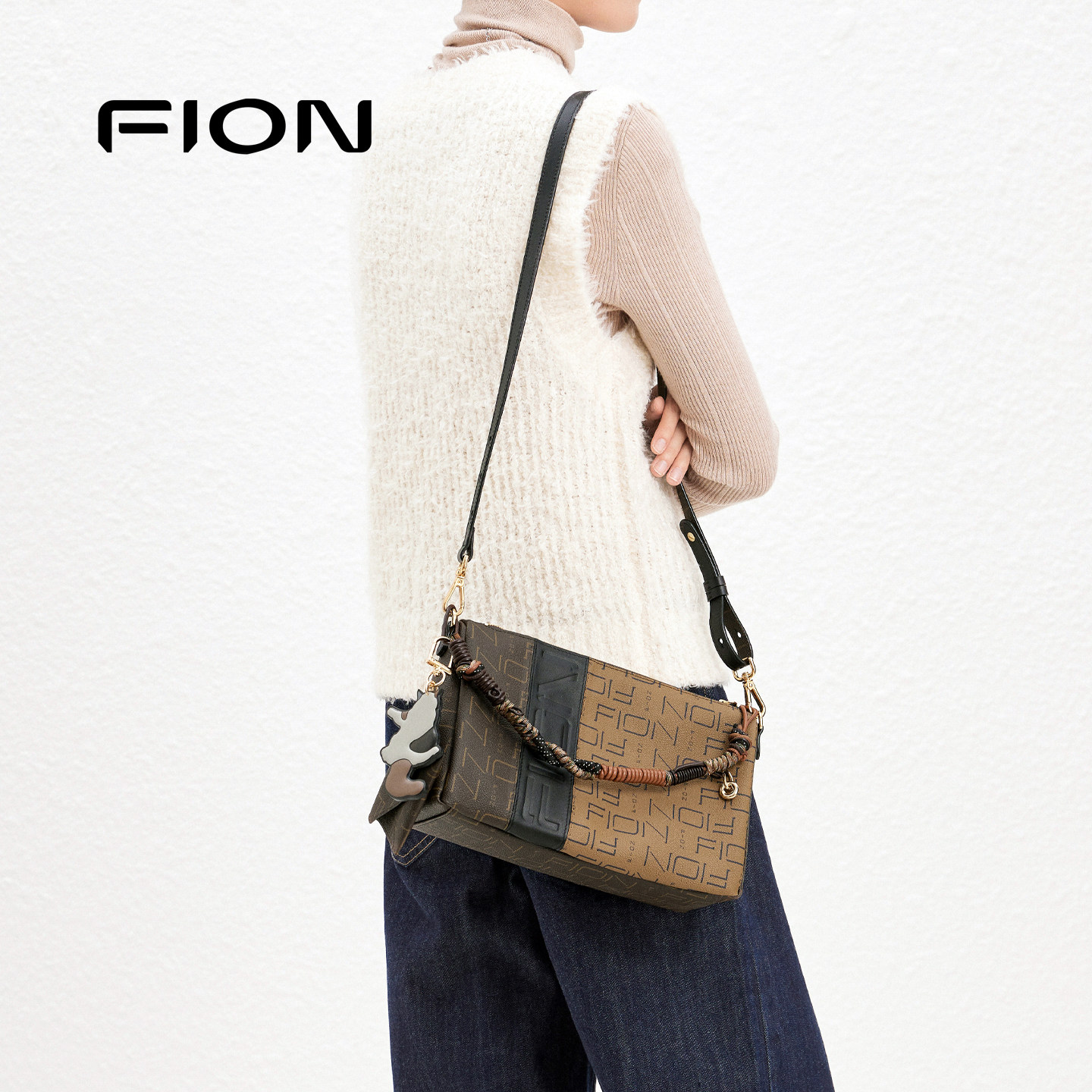 Fion/菲安妮女包老花腋下包新款通勤hobo包复古枕头包单肩斜挎包