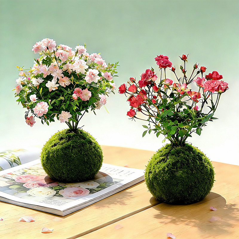 水培姬月季须惠姬乙女带花苞办公室内桌面好养苔藓球盆栽花卉绿植