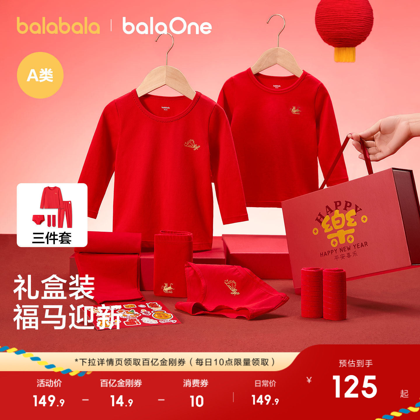 巴拉巴拉儿童内衣礼盒内裤袜子男童女童秋衣秋裤套装红色本命新年
