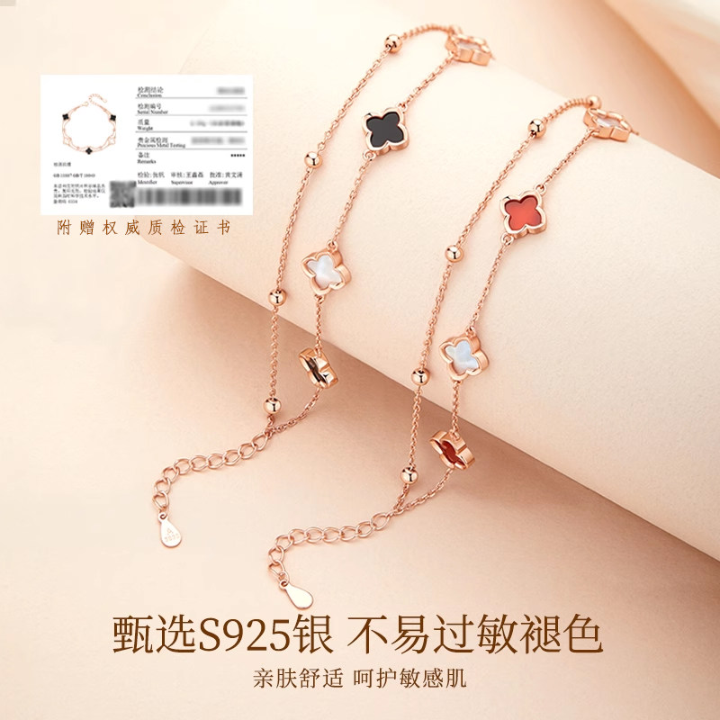 黑玛瑙四叶草手链女925银2026新款轻奢高级感手镯元旦礼物送女友
