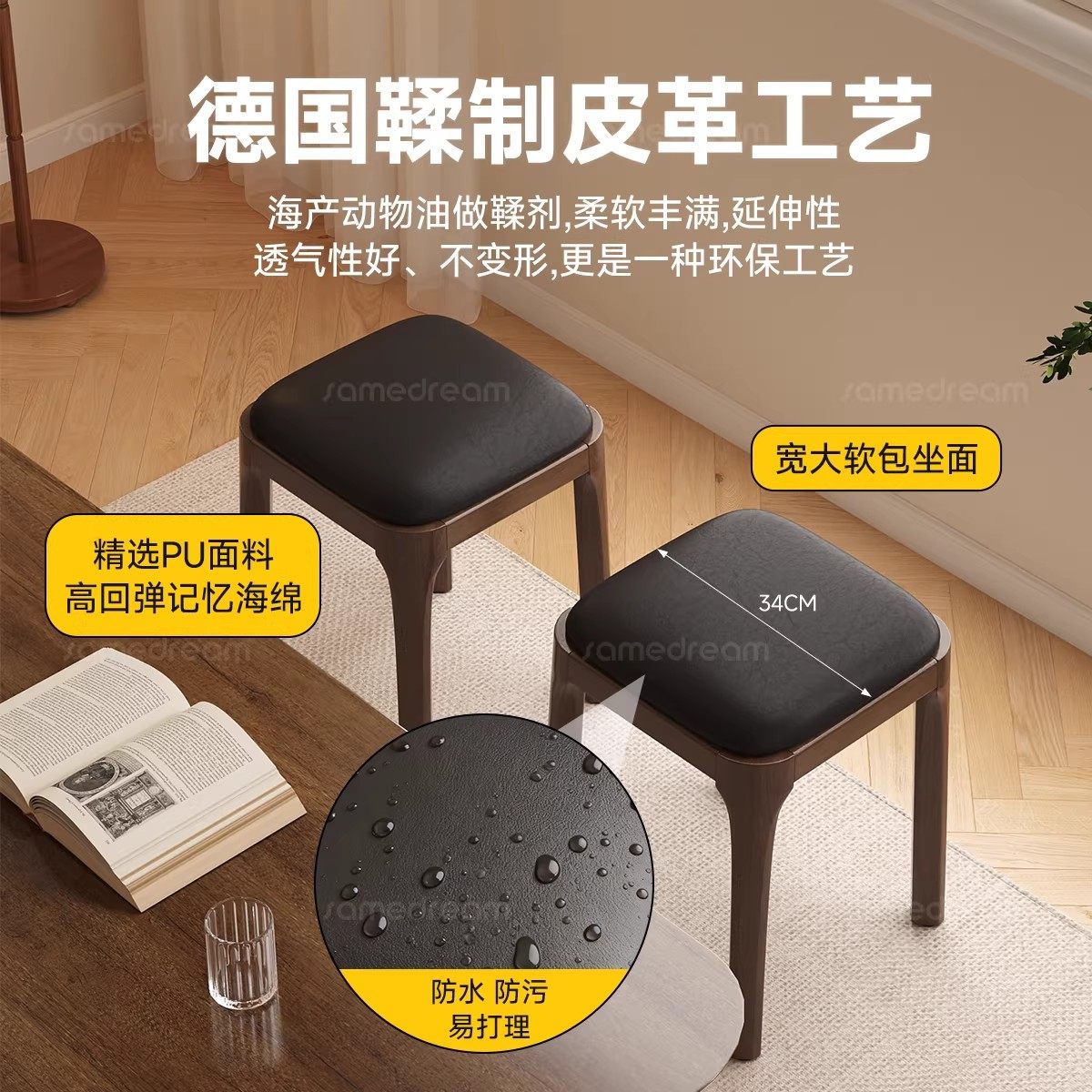 三梦实木凳子可叠放软包板凳客厅餐桌备用凳结实木头叠叠凳高椅子