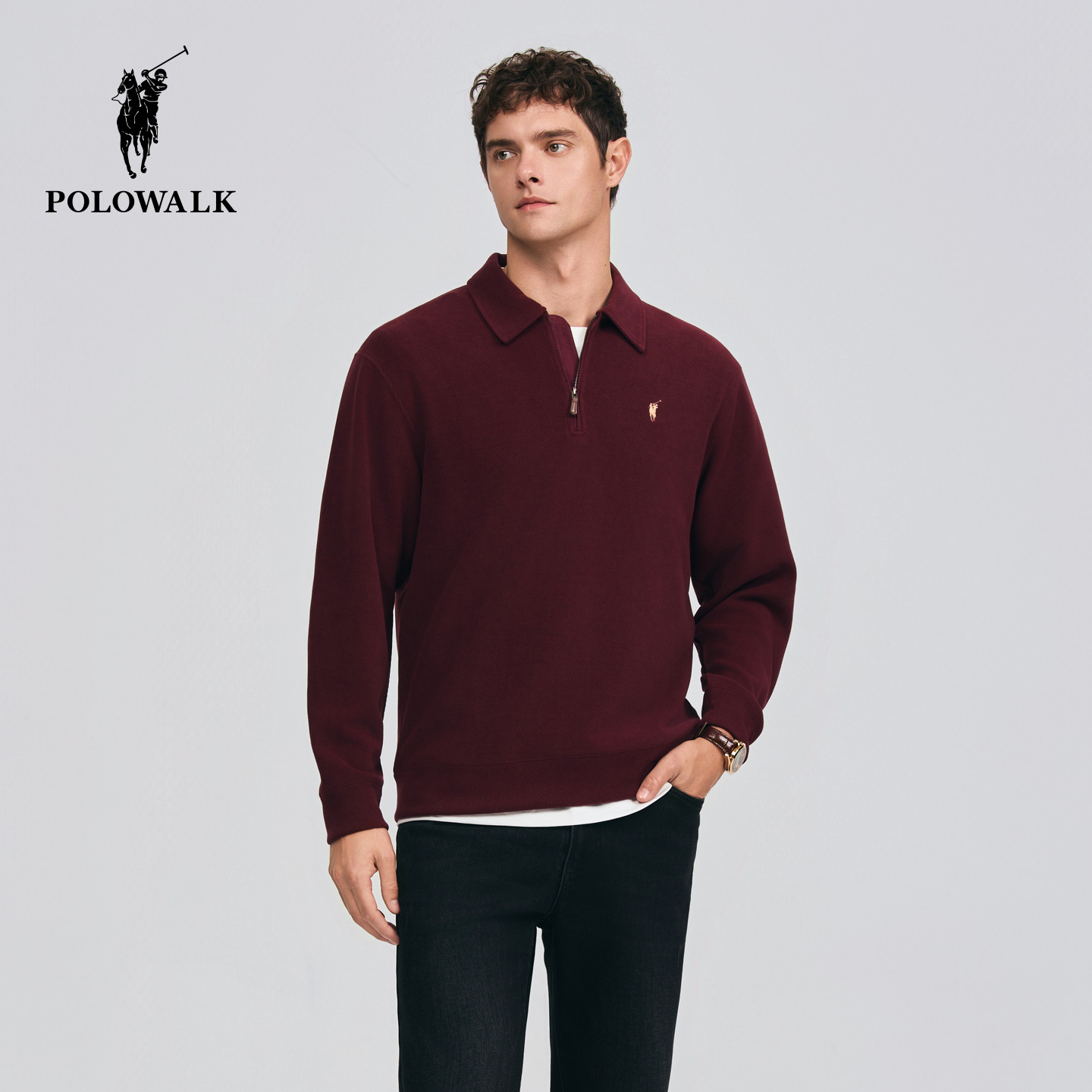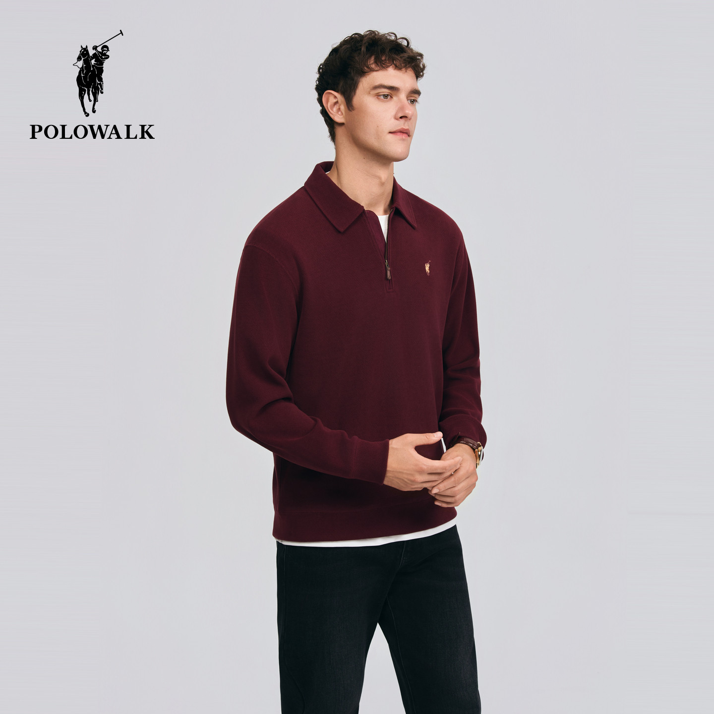 【新年款】POLOWALK男式卫衣2026春季新品男装简约半拉链套头卫衣