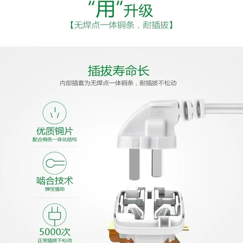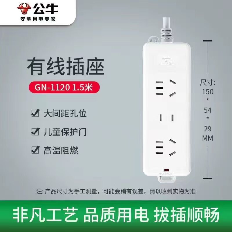 公牛插座带线插排接线板家用开关插板条形有线安全门功率