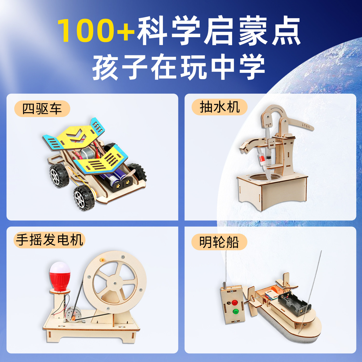 2026年新款木质教具科学实验套装儿童益智玩具木制手工制作DIY启蒙教具幼儿园小学生创意拼装小发明材料包
