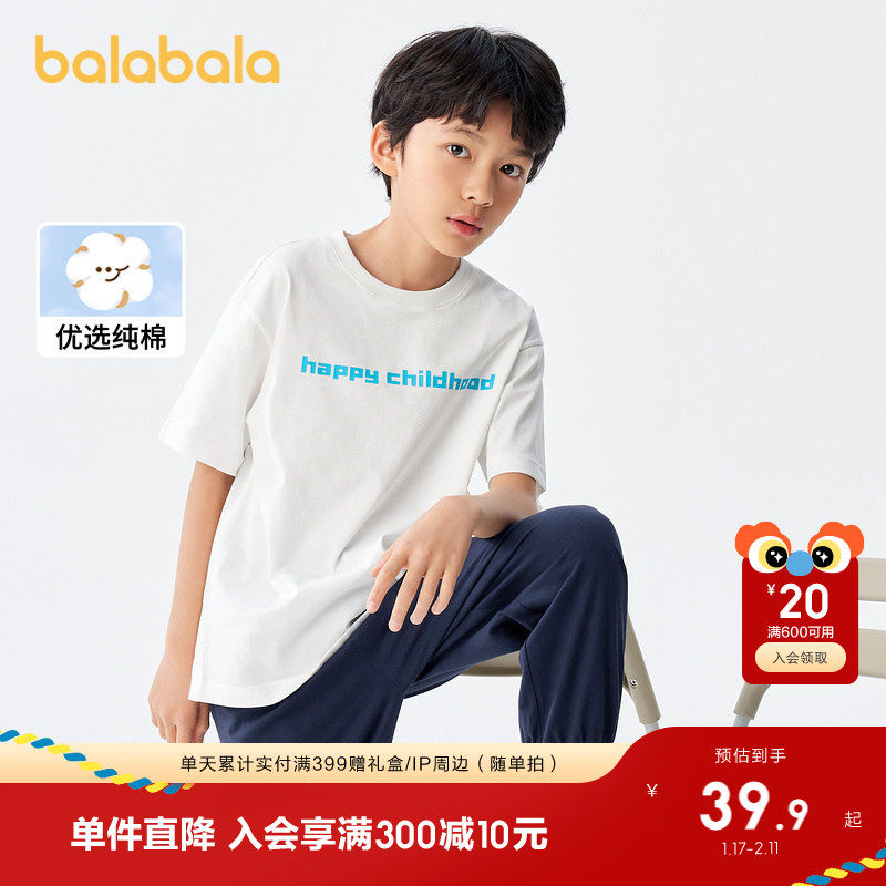 巴拉巴拉童装儿童男童上衣女童t恤亲子装短袖2025中大童纯棉