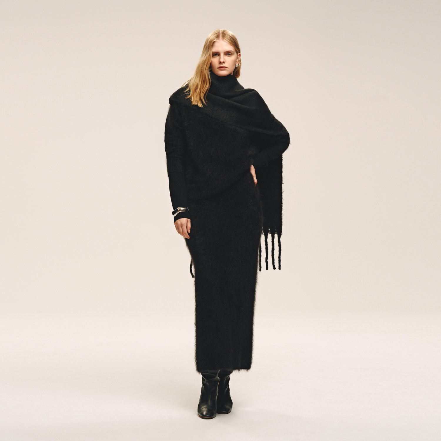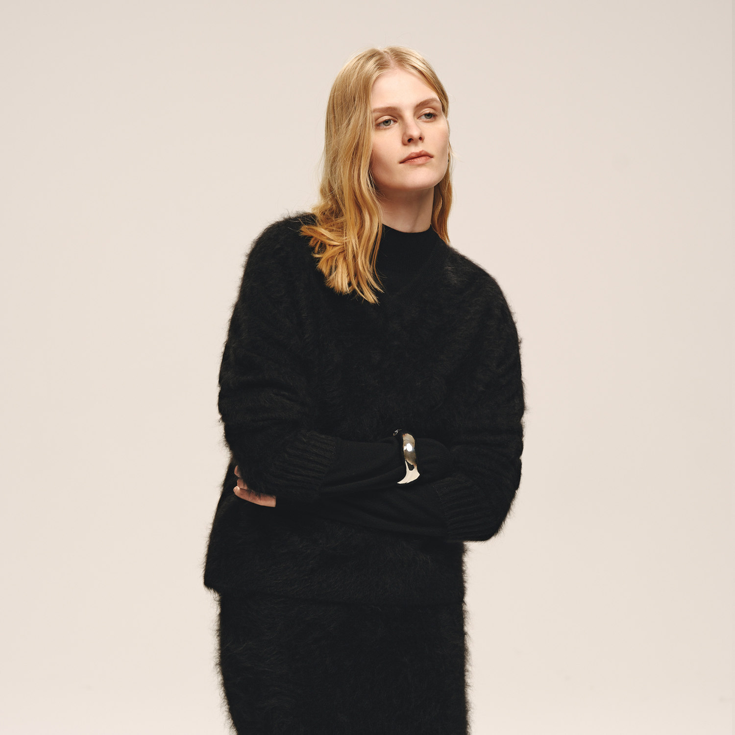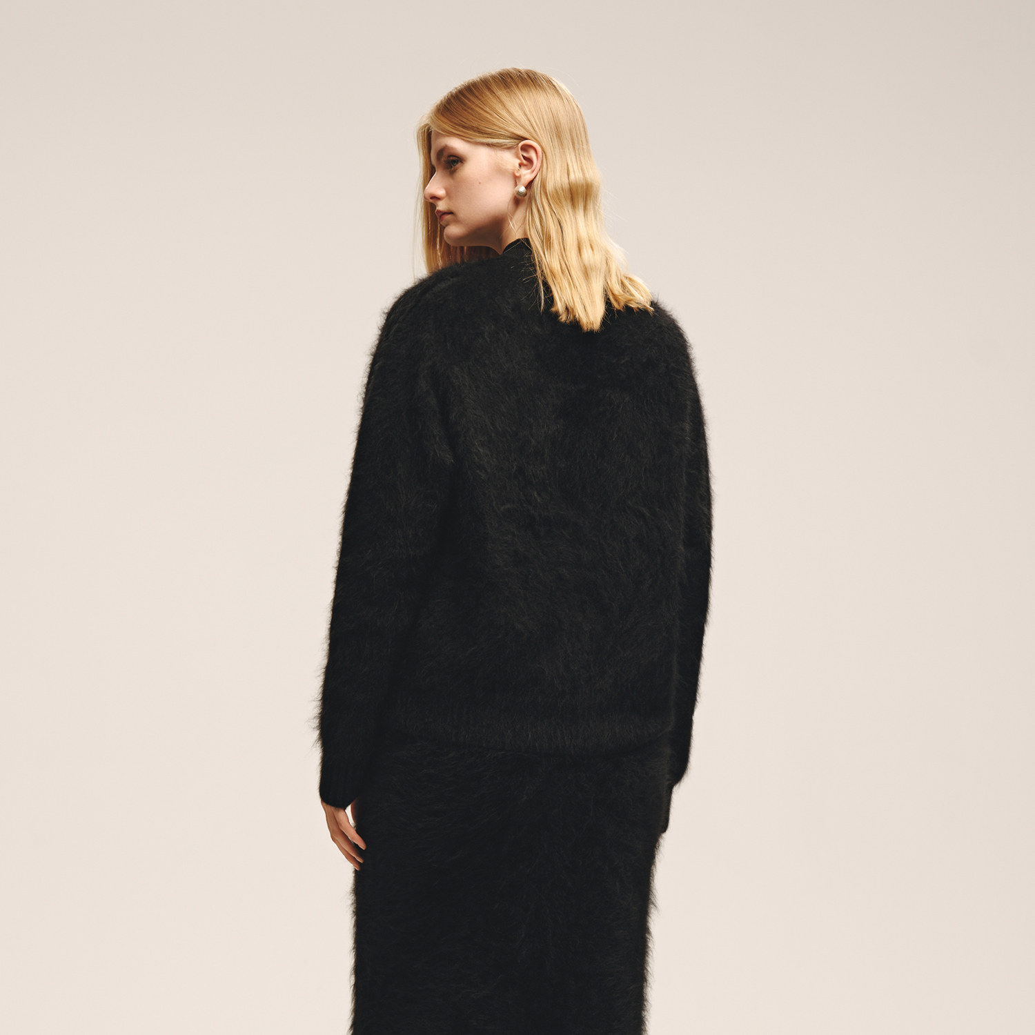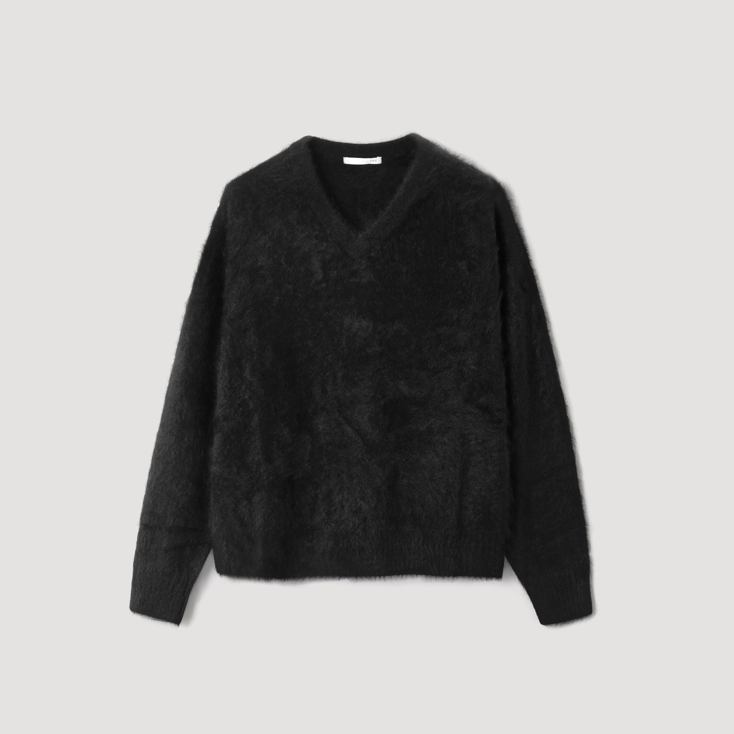 OVV2025秋冬新款女装优雅大气V领拉绒工艺长袖羊绒衫