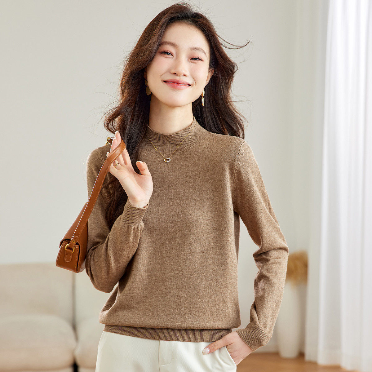 雪中飞超柔舒适毛衣女秋冬半高领长袖休闲针织打底衫纯色内搭上衣