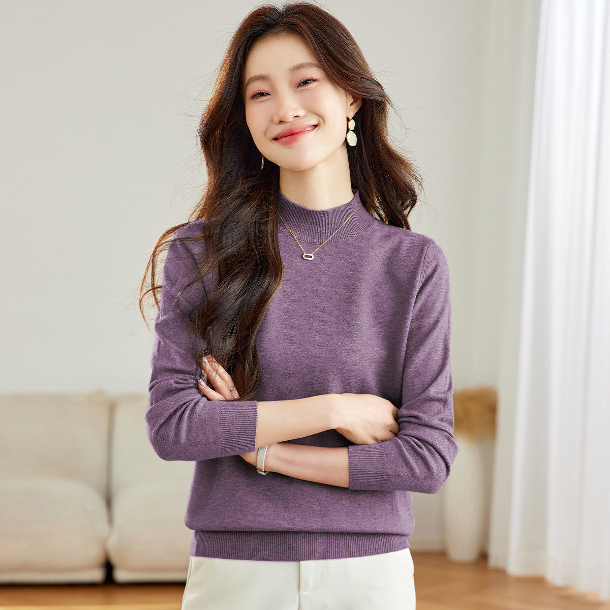 秋冬100%软糯毛衫女半高领白色内搭针织打底衫修身气质中领毛衣