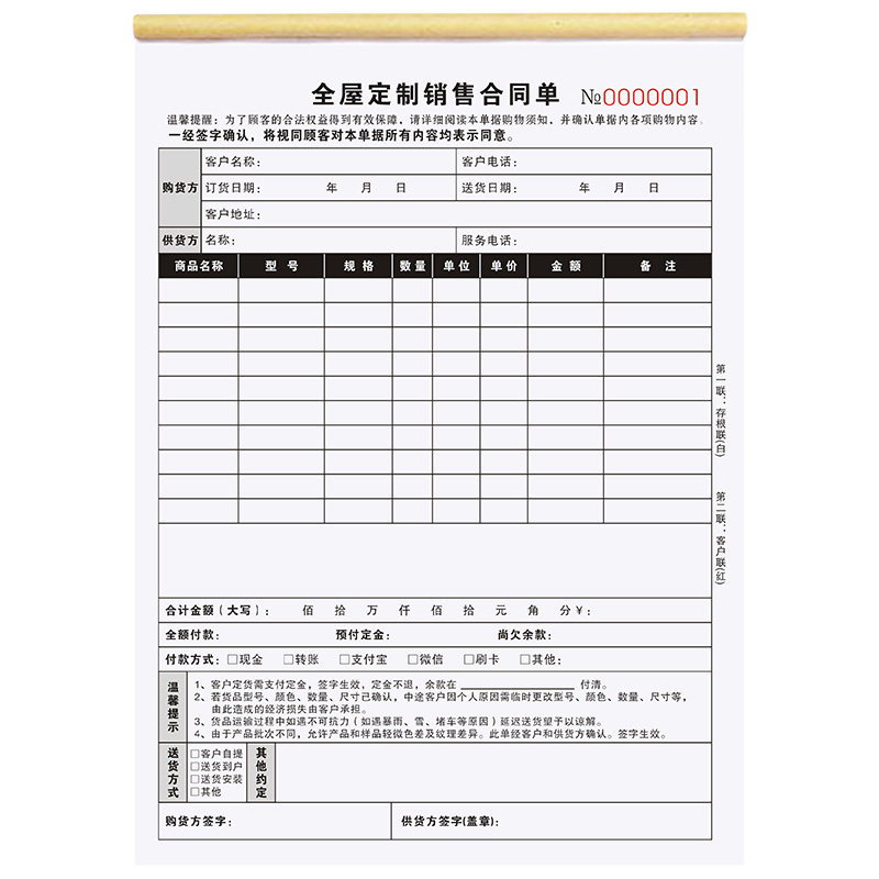 全屋定制销售单家具衣柜订购合同定做窗帘测量订单本橱柜收据木门开单定货本装修预算报价单安装服务单订货单
