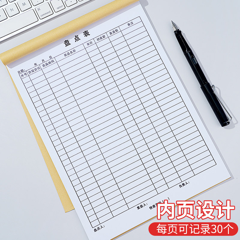 盘点表仓库库存明细表商品进货记录本服装店库存盘点表仓库进货库存盘点登记表店铺营业商品库存盘点月报表