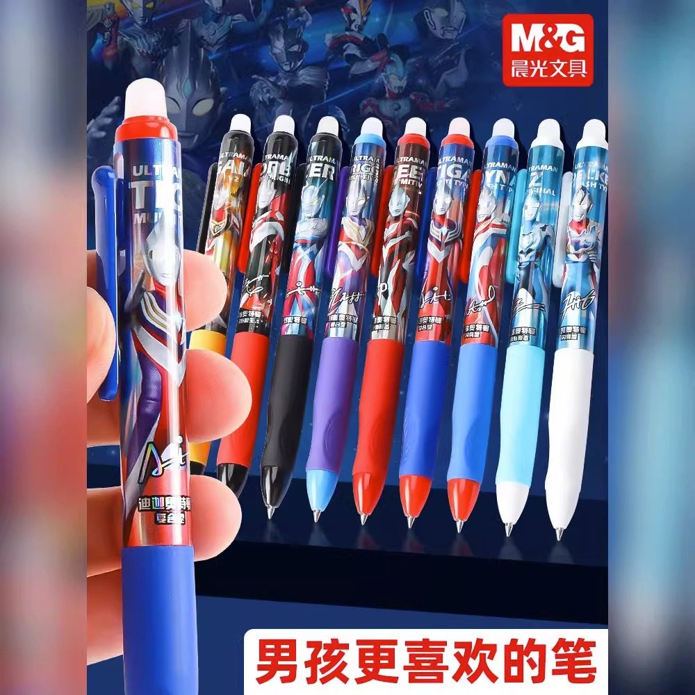 晨光奥特曼可擦笔热可擦中性笔按动笔小学生三年级专用优握带橡皮擦魔力擦摩易擦写晶蓝男孩卡通黑科技网红