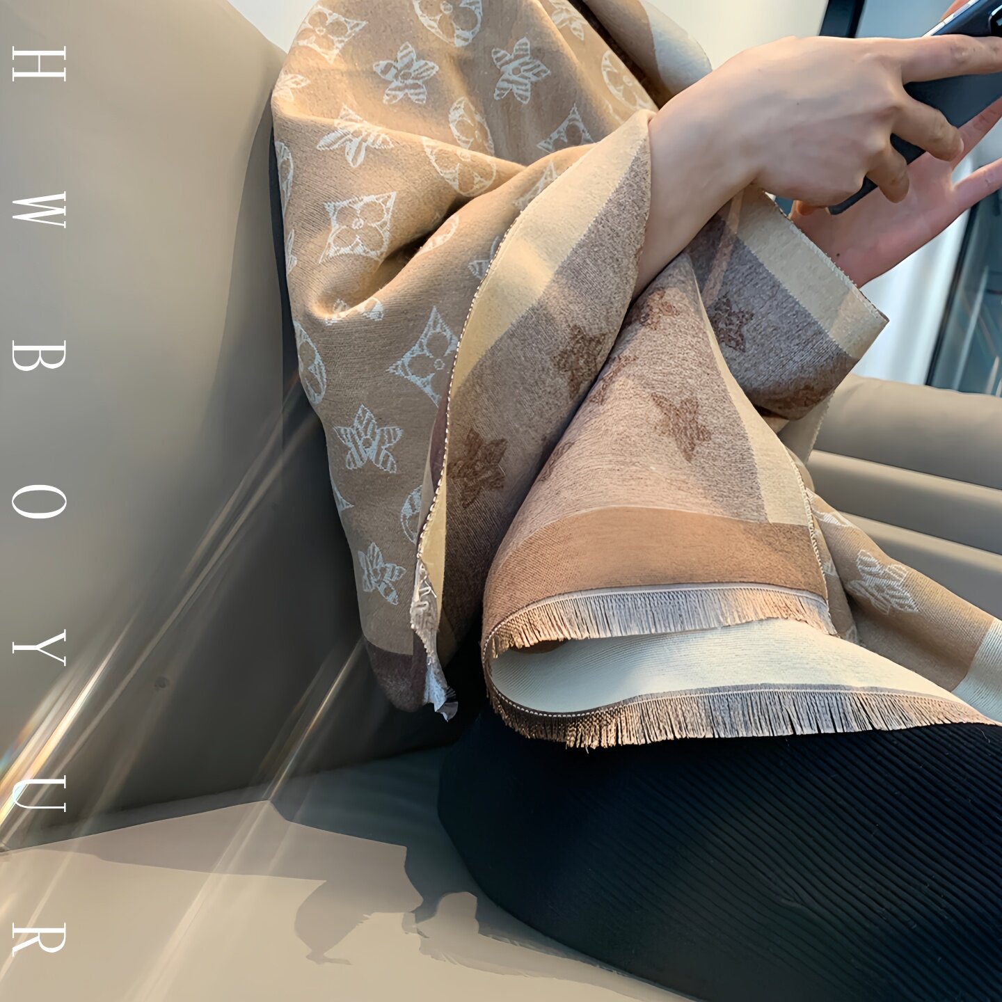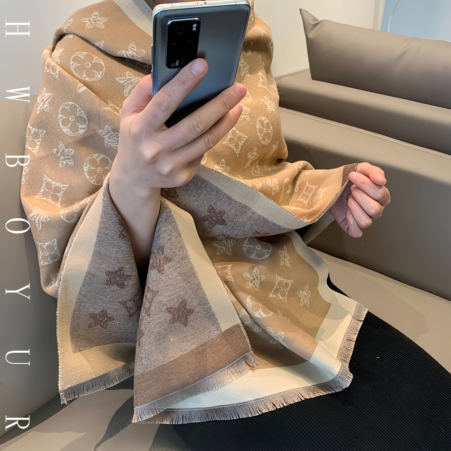 LVАFGН正品老花羊绒围巾两用小香风女披肩冬季保暖披风长加厚
