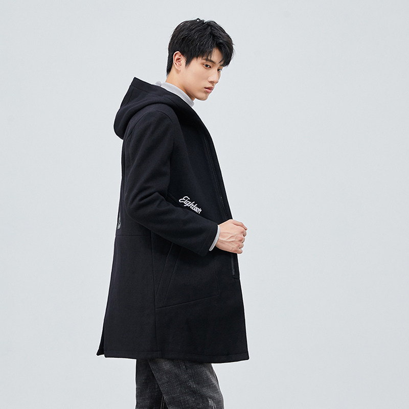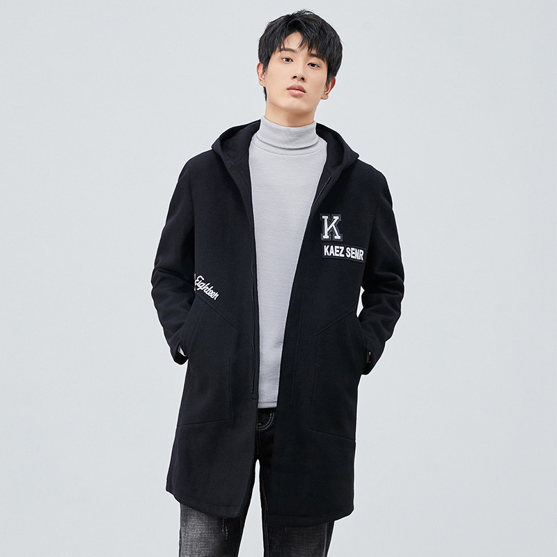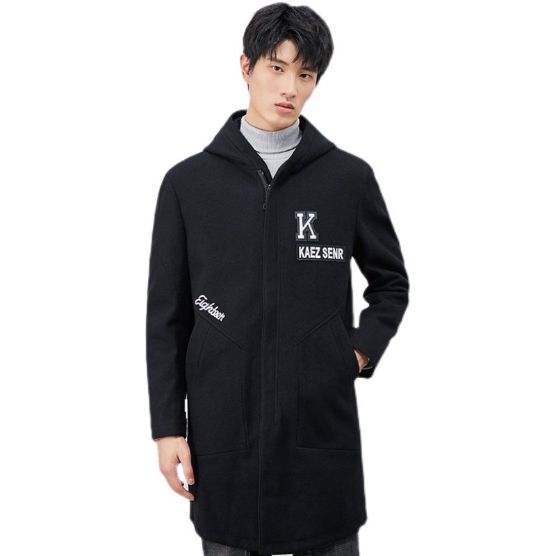 外贸大牌撤柜商务休闲百搭男装中长款羊毛大衣加棉连帽毛呢外套潮