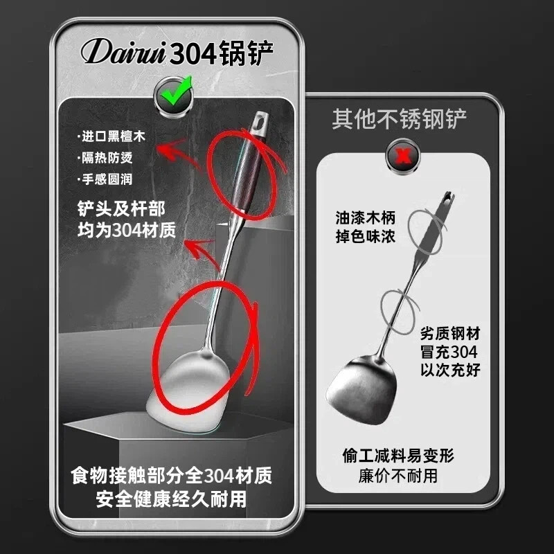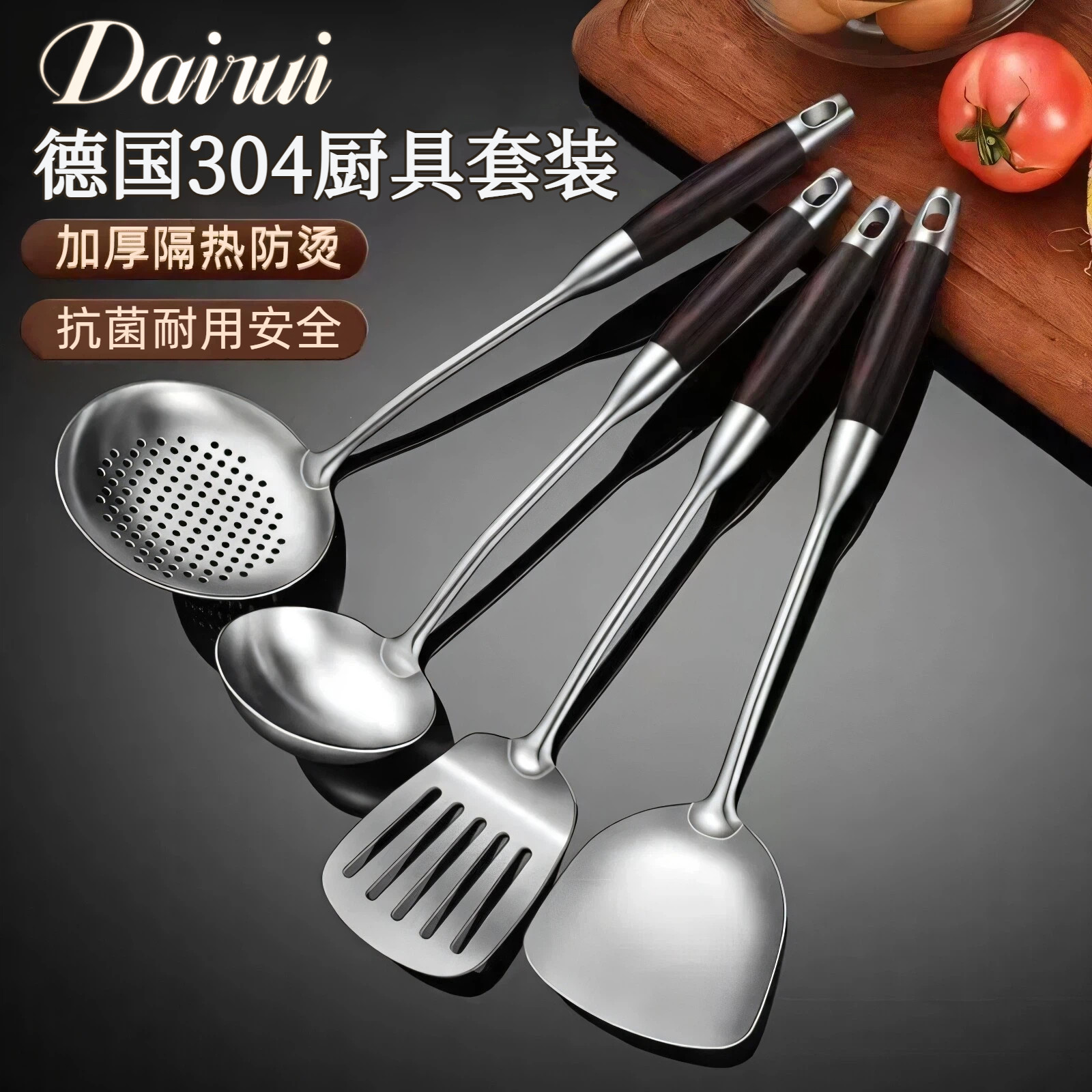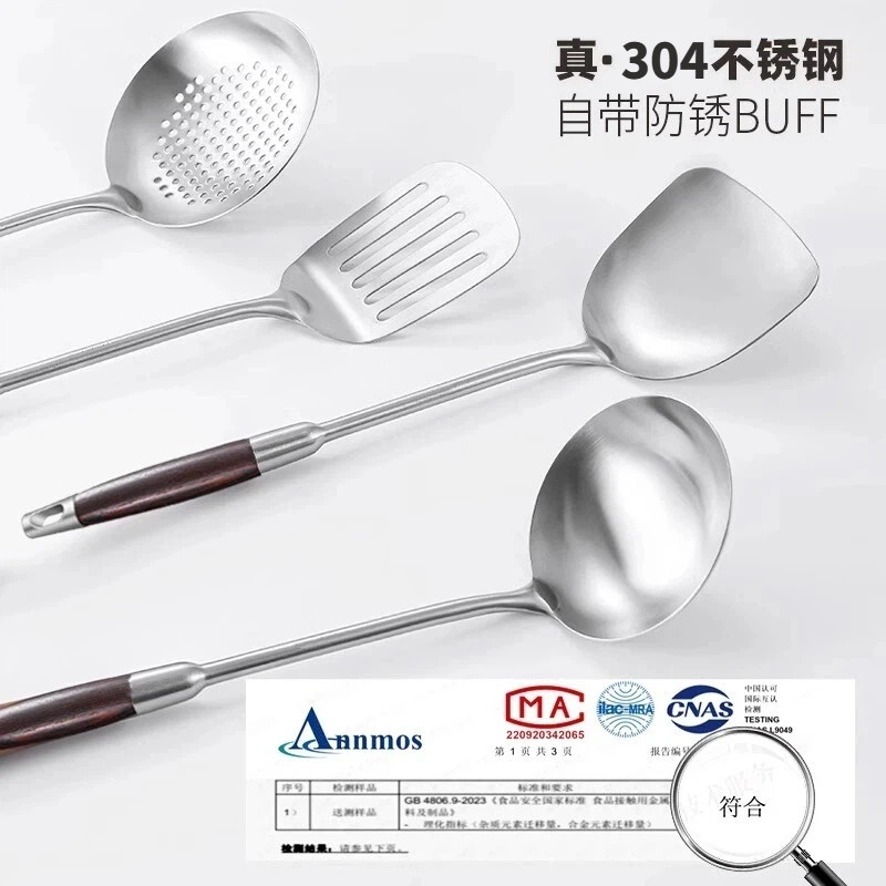 德国304不锈钢锅铲加厚炒菜铲子汤勺漏勺家用厨具炒勺套装铁锅铲