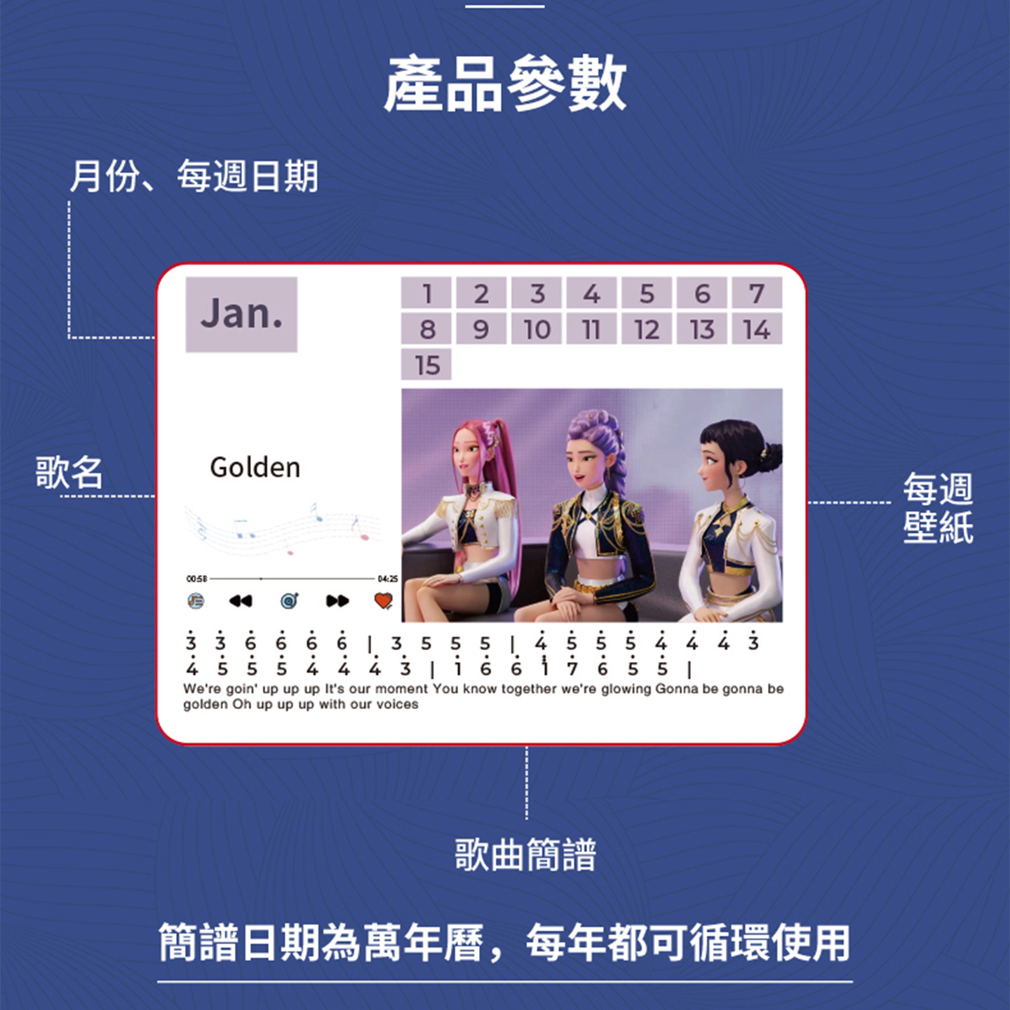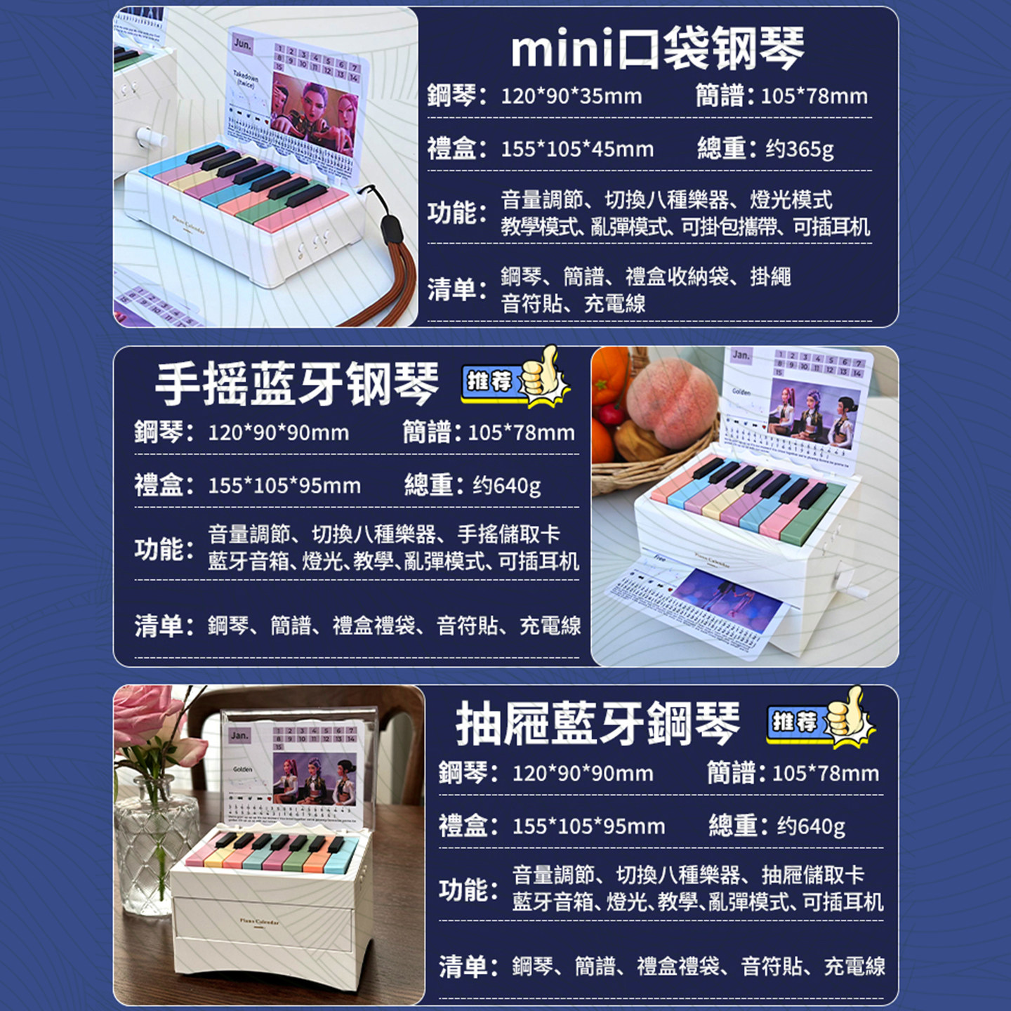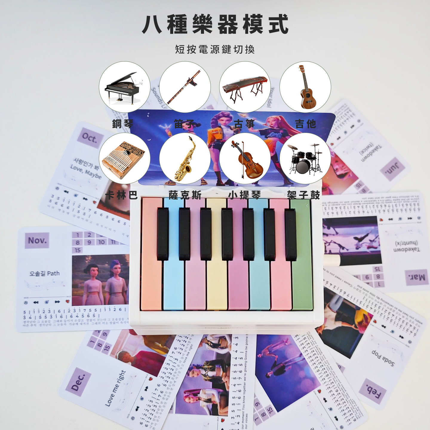 KPOP猎魔女团可弹奏的钢琴台历万年历动画跨境热销带灯光蓝牙礼物