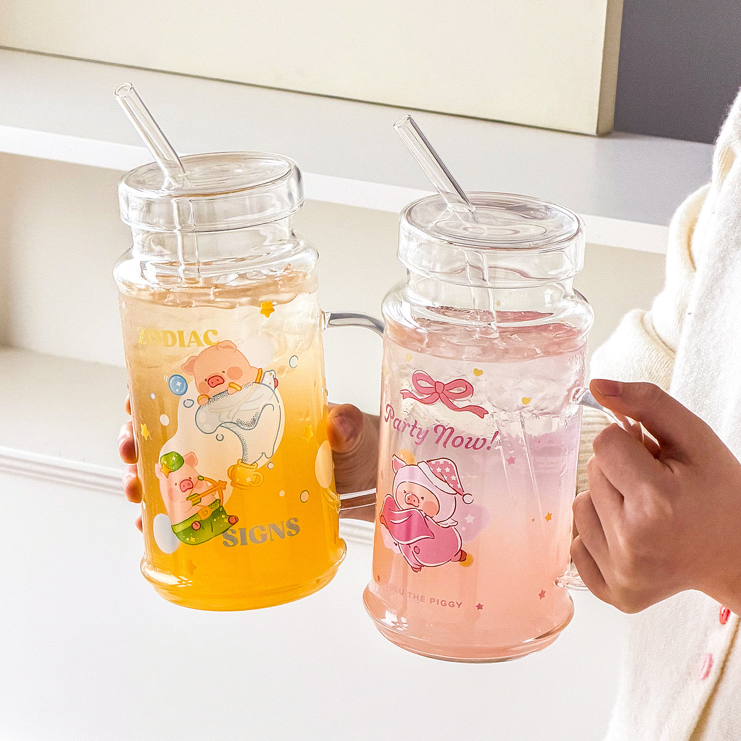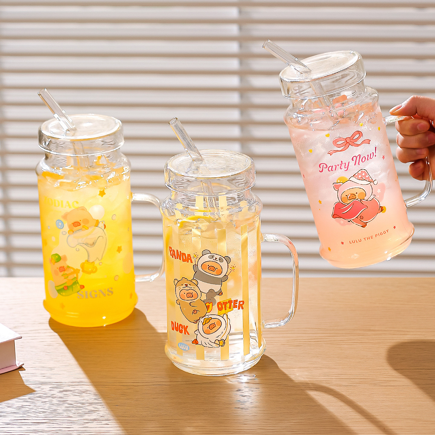 川岛屋&lulu猪联名 高硼硅玻璃杯大容量带盖吸管水杯女高颜值杯子