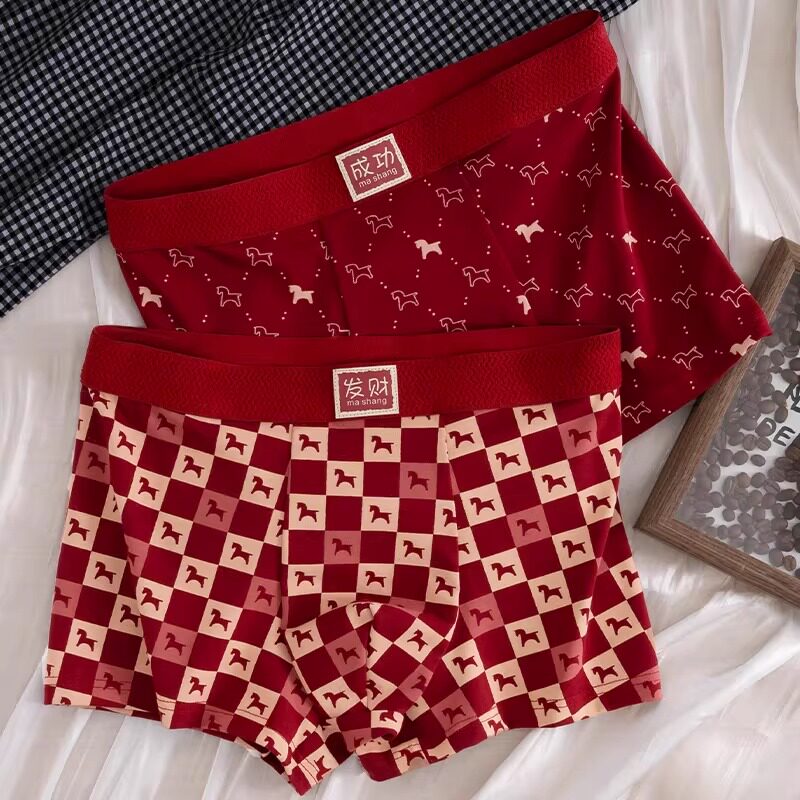 猫人本命年男士内裤纯棉大红色男款短裤2026马年结婚礼物四角裤头
