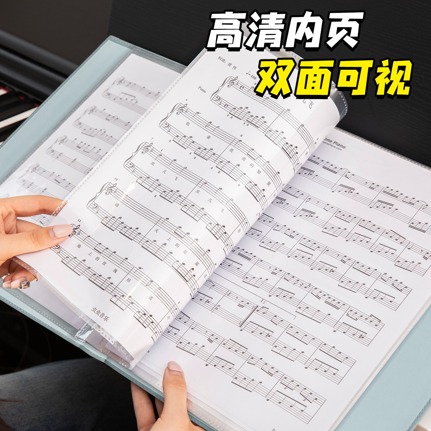 皮面乐谱夹A4谱夹子活页文件夹不反光可修改透明插页吉他钢琴谱夹谱子夹册音乐展开式收纳册本合唱歌谱曲谱