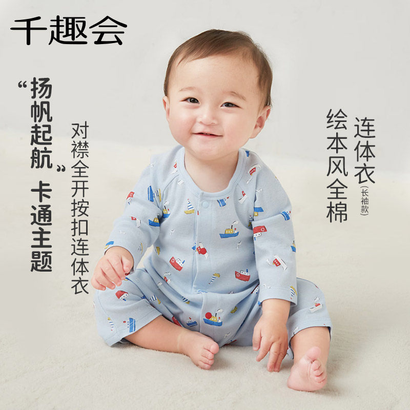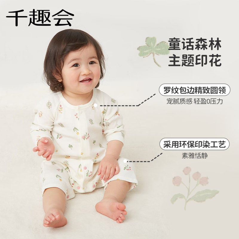 千趣会婴儿衣服男女宝宝春秋款短袖连体衣轻薄细针罗纹棉质包屁衣