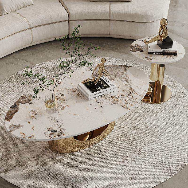 轻奢岩板大小茶几组合椭圆客厅后现代意式极简不锈钢设计师款桌类