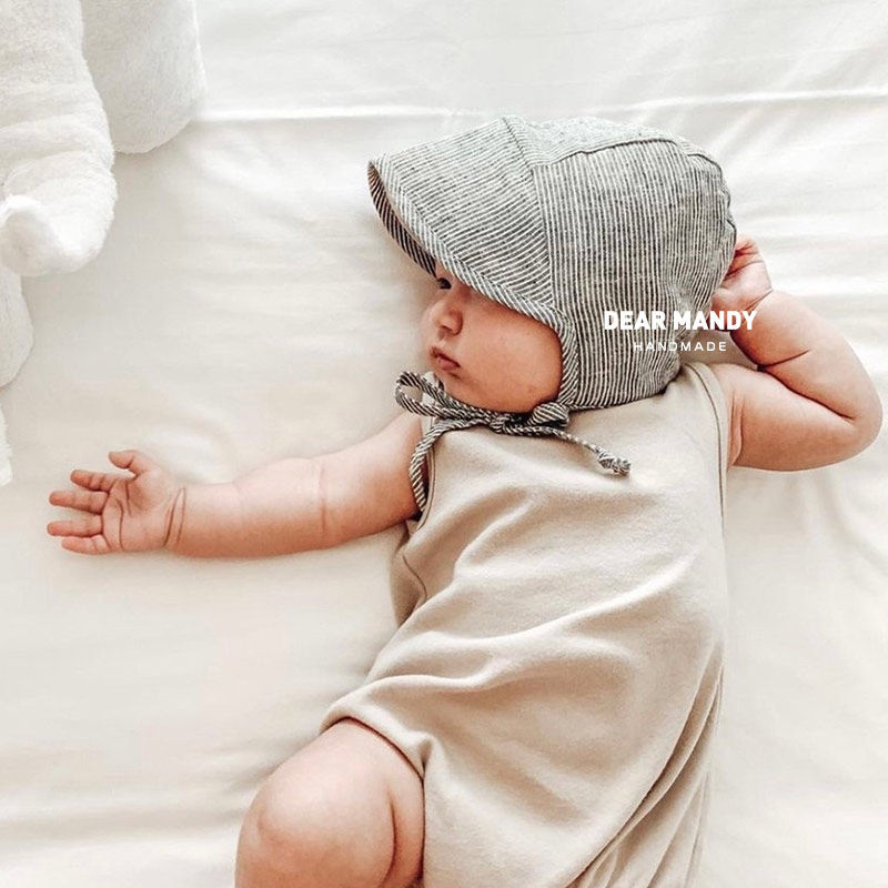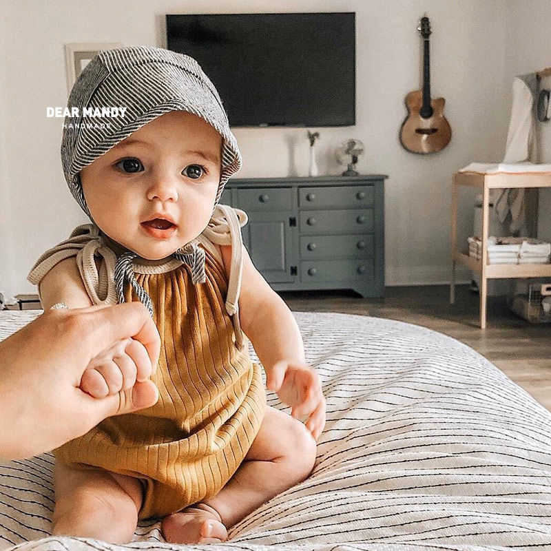 条纹婴儿帽子大帽檐防晒纯棉透气男女宝宝遮阳帽儿童太阳帽春夏季