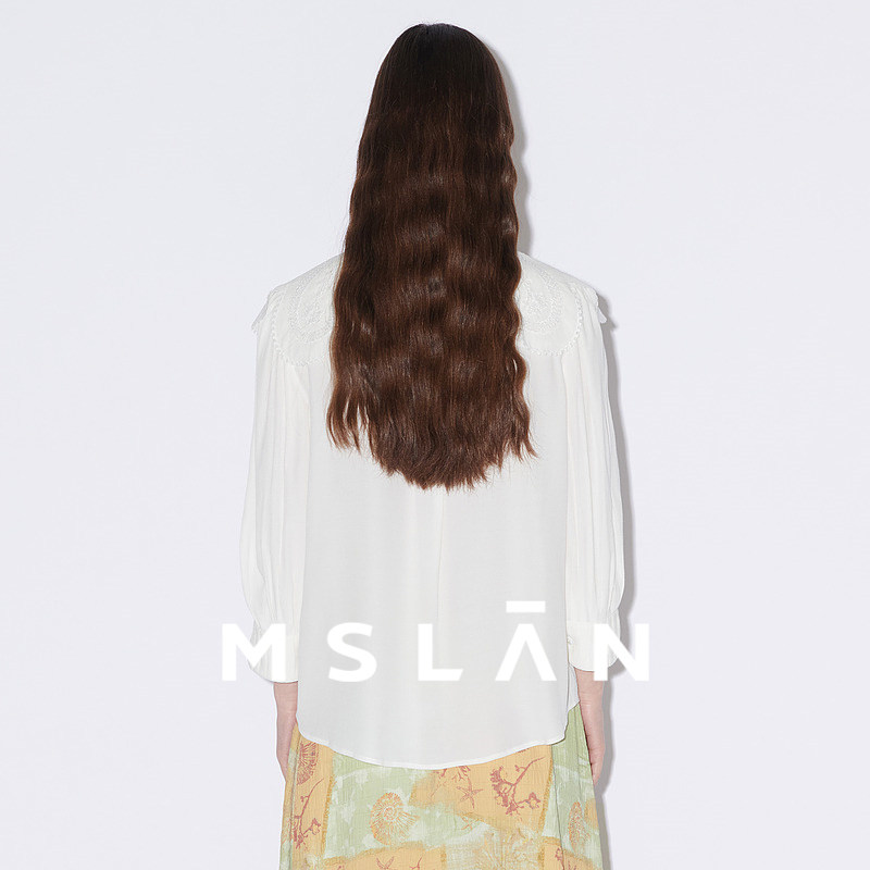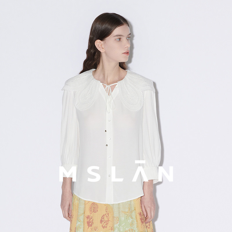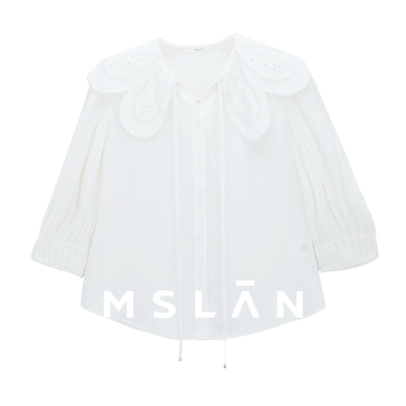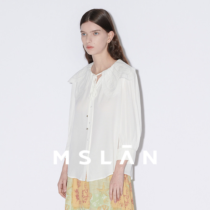 MSLAN早春减龄绣花娃娃领雪纺衫/ 系带大翻领长袖衬衫MFBA1405