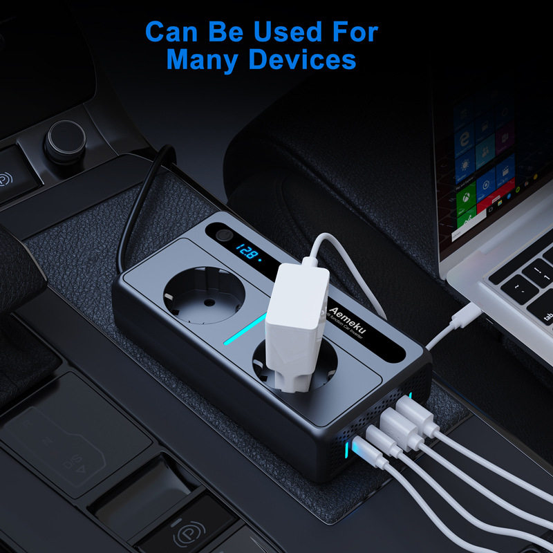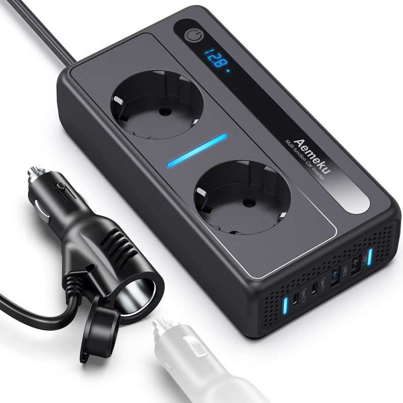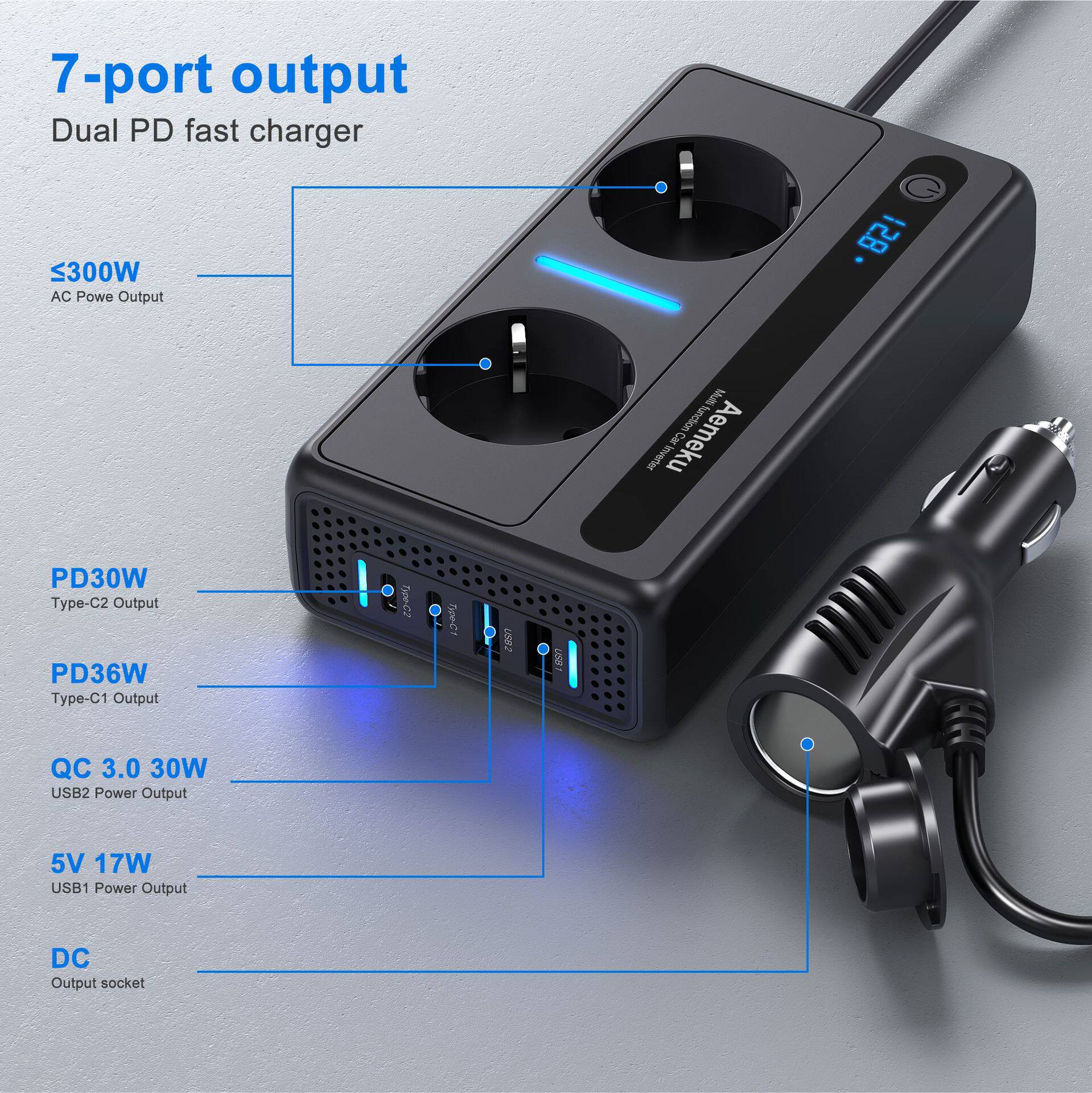 新款跨境热销300W带数显逆变器12v转220v欧规多功能电站