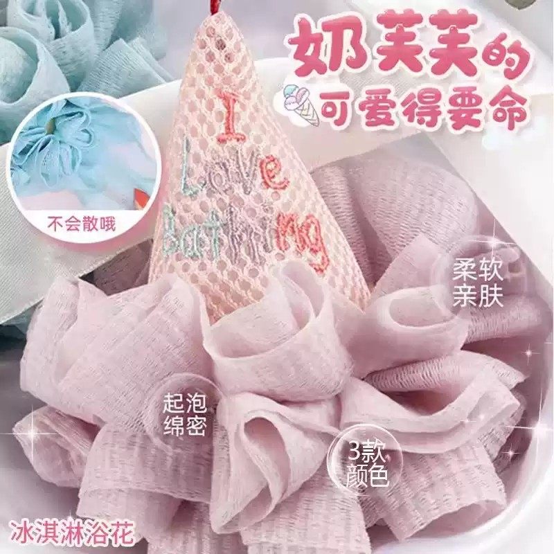 可爱冰淇淋沐浴球男女浴花搓澡两用儿童宝宝洗澡神器高档不散大号