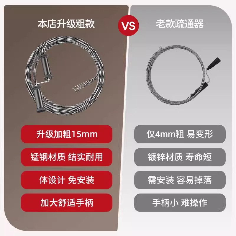 加粗款下水道疏通神器家用马桶疏通器卫生间厕所管道堵塞弹簧