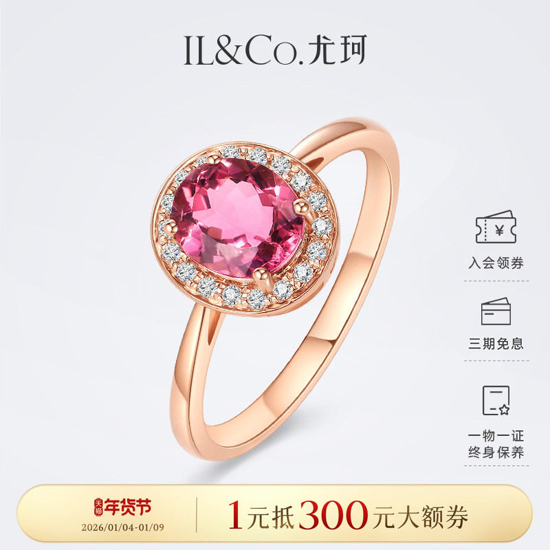 ILCO尤珂 红18K金天然彩色宝石戒指复古钻石镶嵌粉碧玺彩宝女款戒