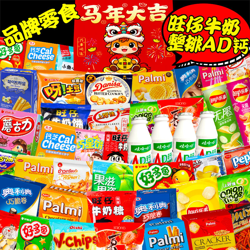 上好佳鲜虾片虾条薯片洋葱圈零食大礼包解馋小吃怀旧休闲食品批发