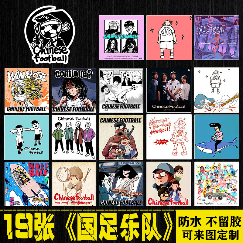 Chinese football国足乐队中国风摇滚电脑手机拉杆箱吉他防水贴纸