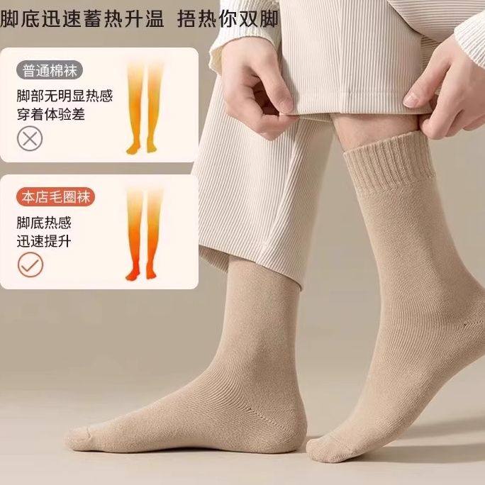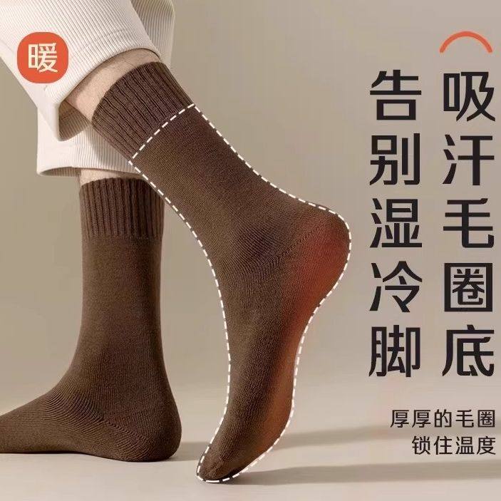 袜子男加厚加绒保暖毛圈袜中筒袜秋冬款男士袜子高筒长筒袜