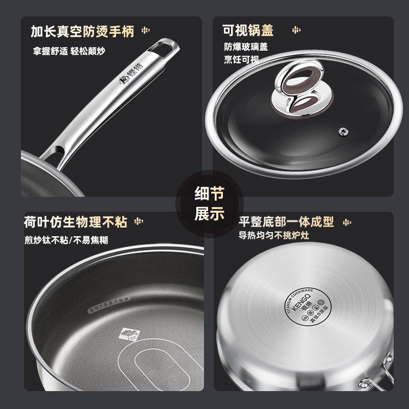 炊大皇无涂层平底锅不粘锅家用牛排煎锅煎蛋电磁炉燃气灶专用钛锅