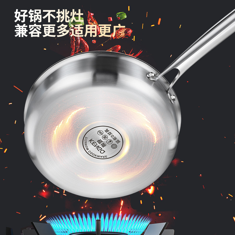 华际达平底锅316不锈钢不粘锅家用牛排煎锅炒菜炒锅无涂层电磁炉
