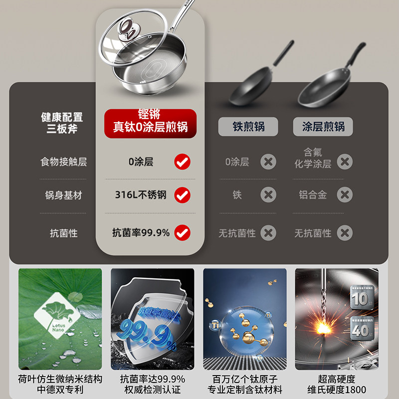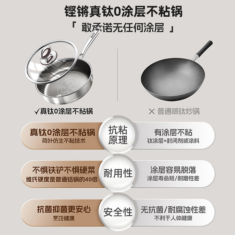 铿锵平底锅不粘锅家用真钛无涂层电磁炉燃气用烙饼锅加深牛排煎锅