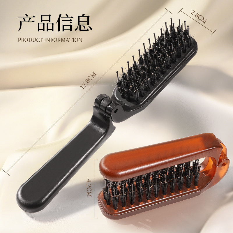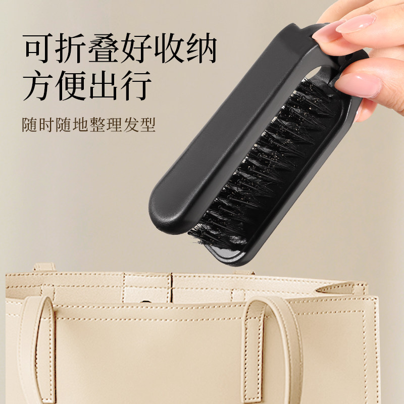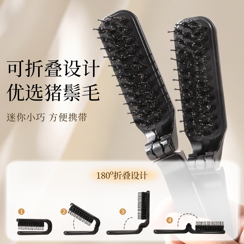 便携折叠猪鬃毛梳鬓角梳女士化妆盘发卷发蓬松造型美发打毛小梳子
