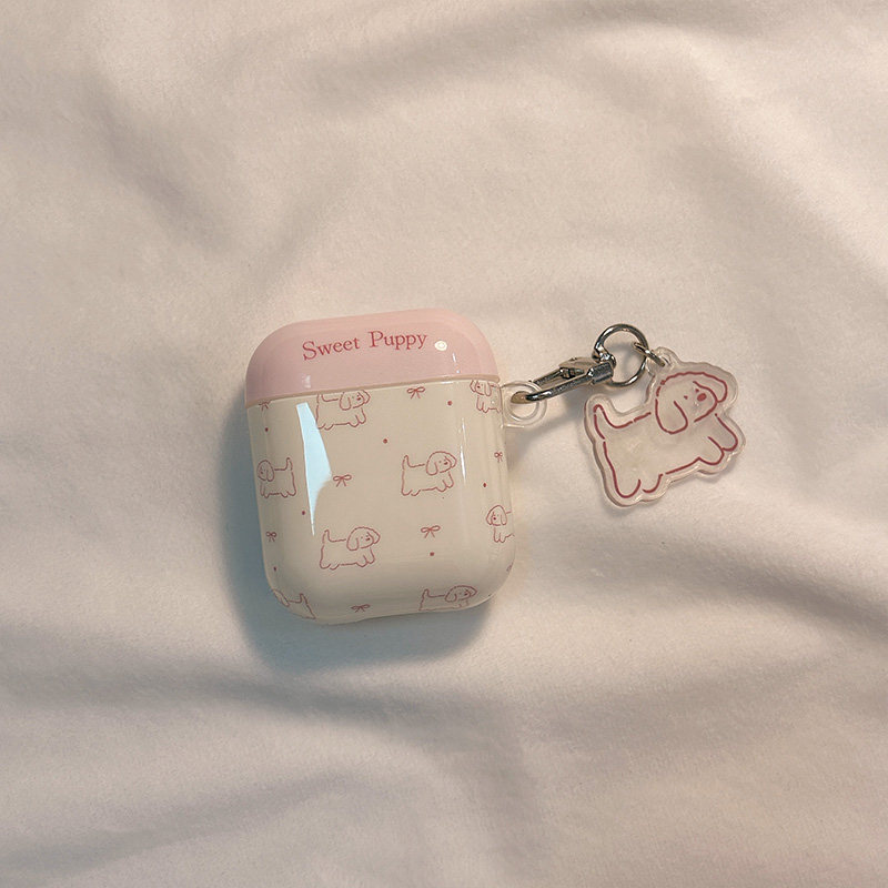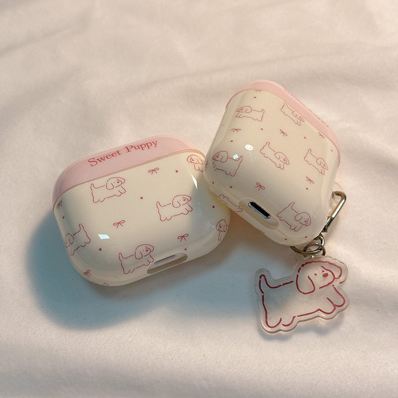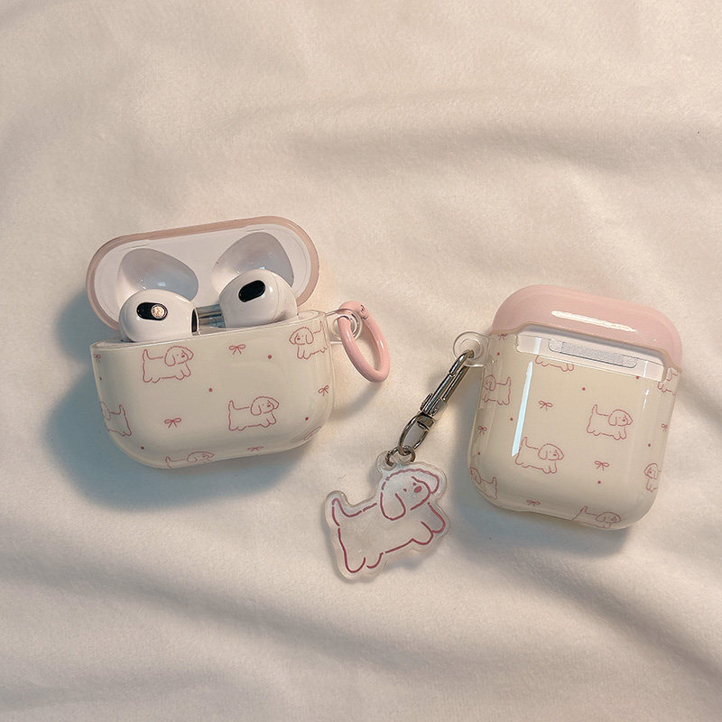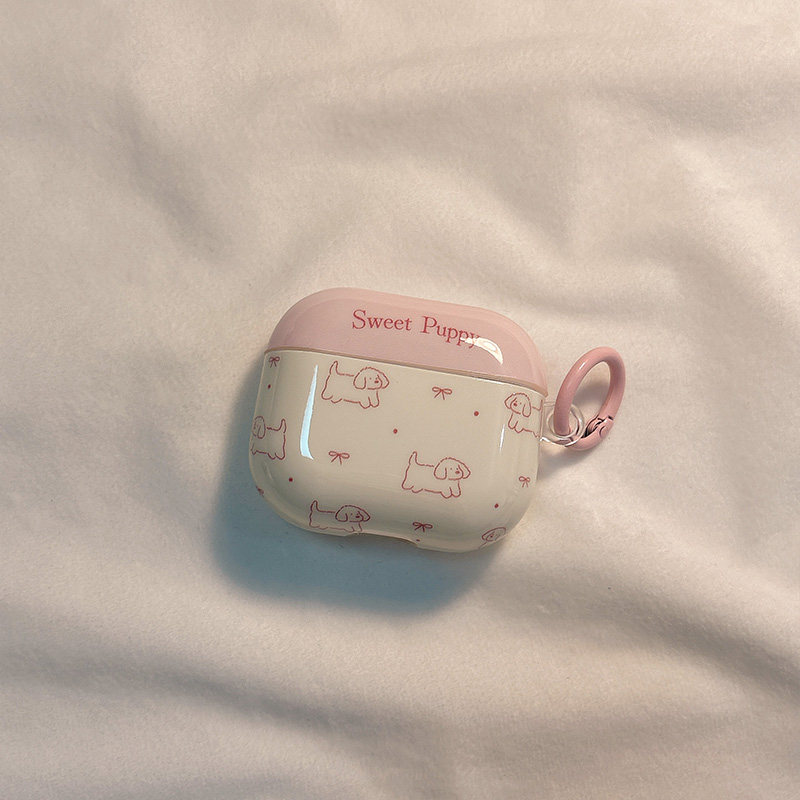 韩系粉白拼色线条小狗适用AirPods4保护套新款iPod苹果耳机壳1/2代无线蓝牙盒3代airpodspro2代软防摔保护壳