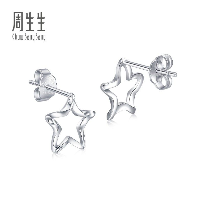 周生生Pt950铂金五角星耳钉星星耳环耳饰91931E定价