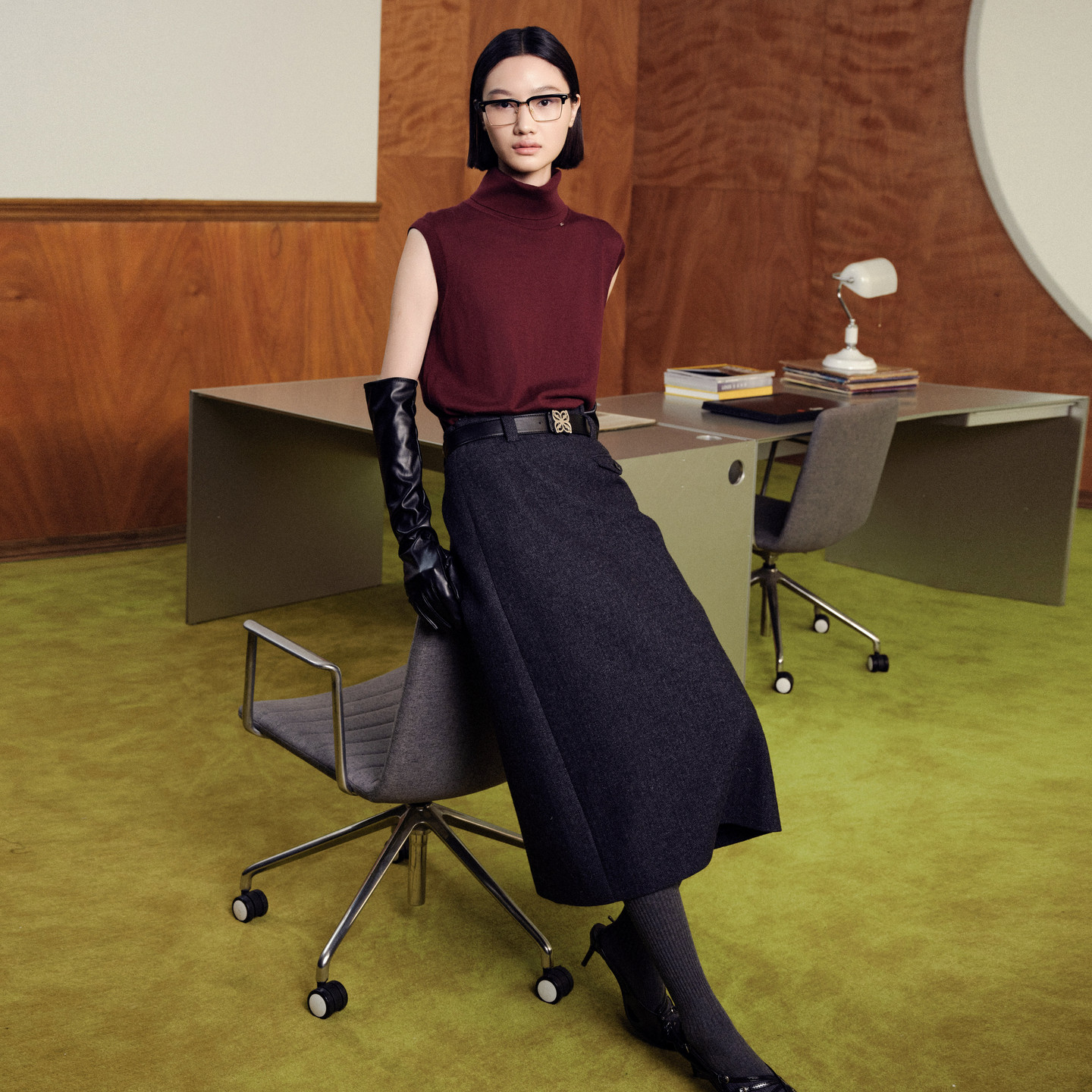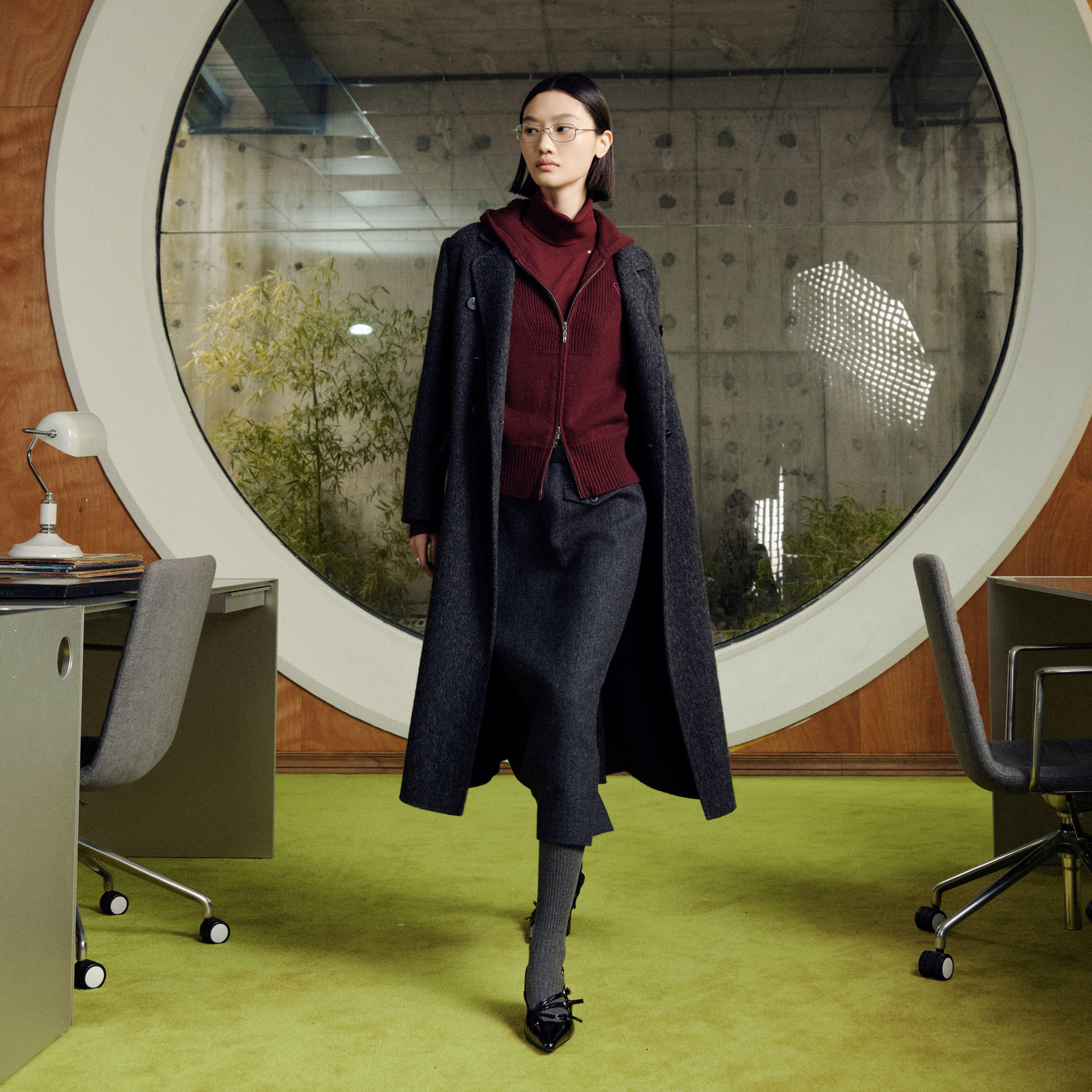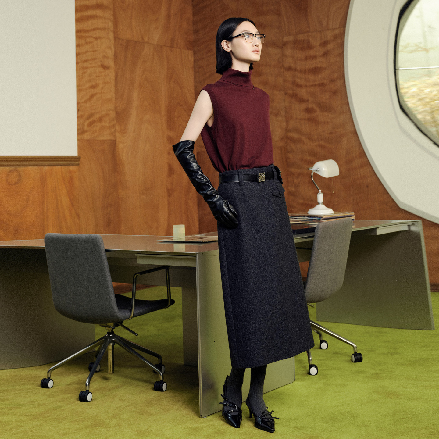 MJ STYLE灰色百褶西装裙女秋冬半身裙高腰休闲大摆a字过膝中长裙