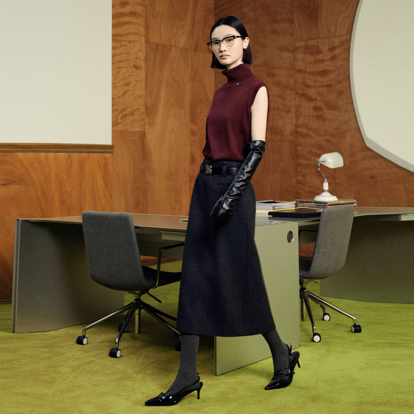 婉甸2025年冬新品灰黑人字纹长包裙半身裙工作裙1244K08GS3A