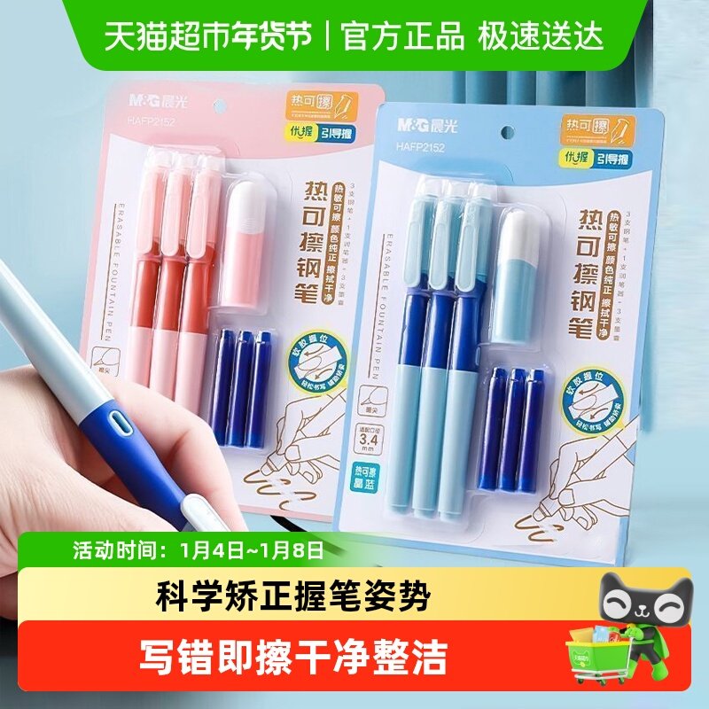 晨光优握热可擦钢笔小学生三年级专用3.4mm口径热敏可擦墨囊可替